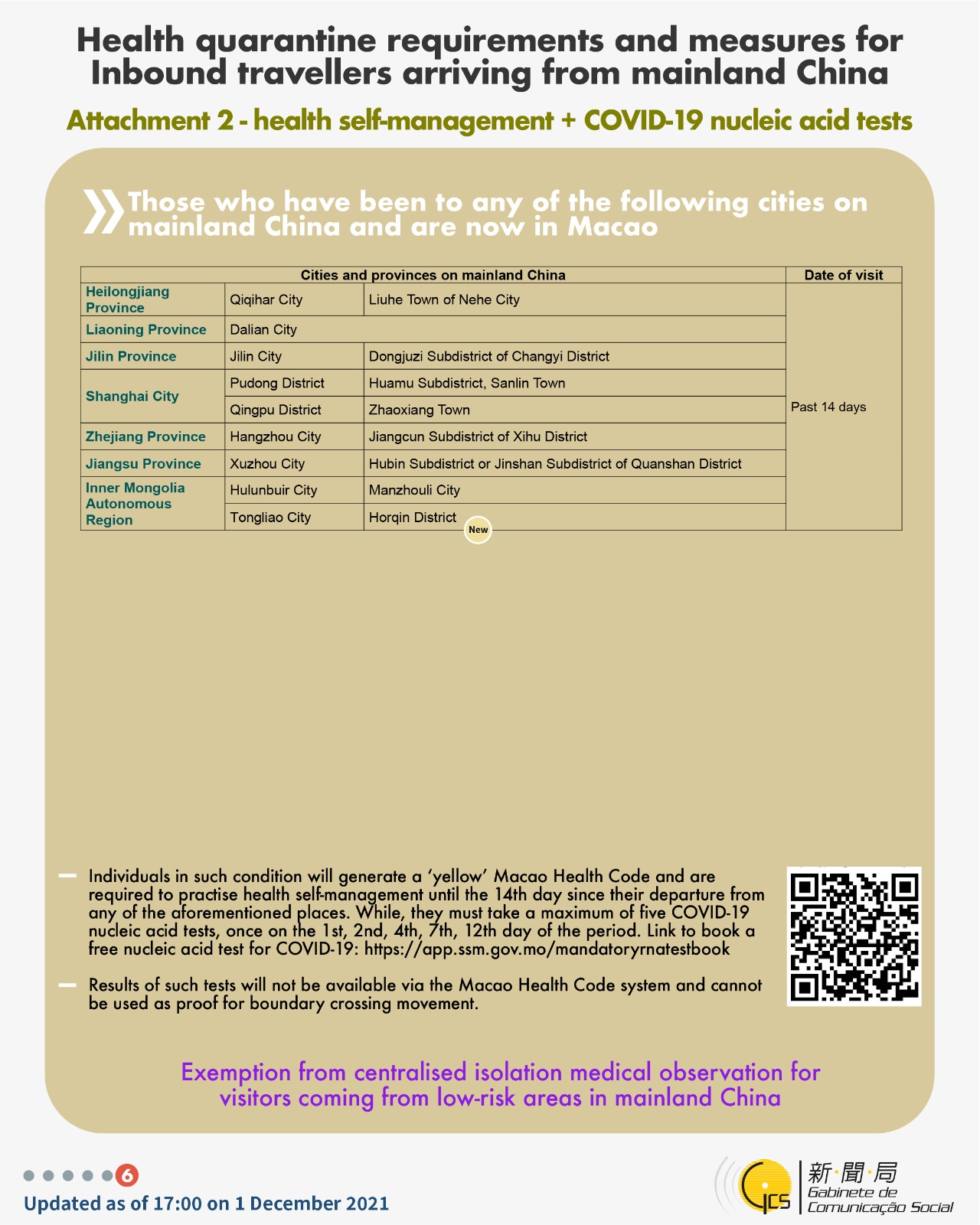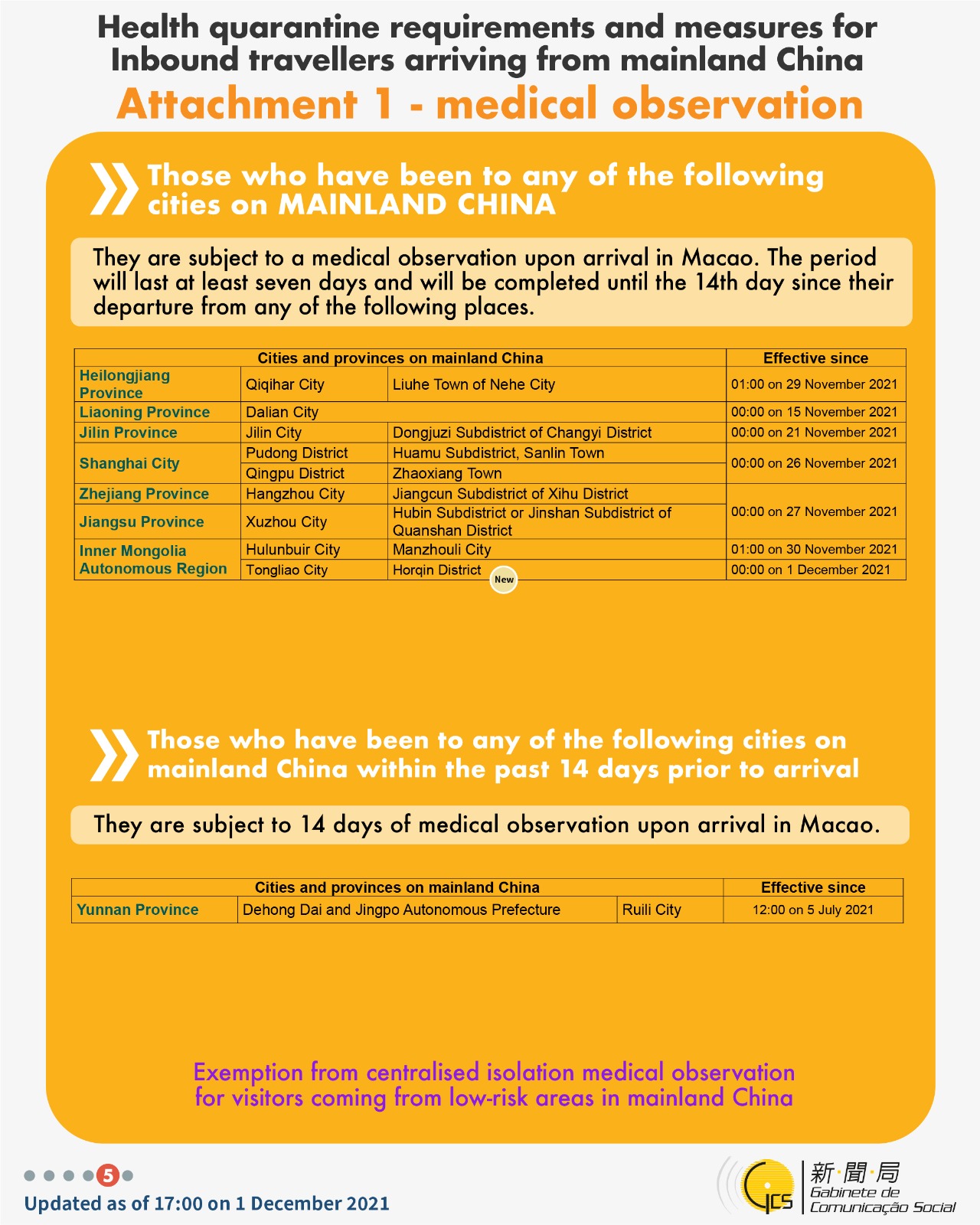 [infographic] 1 December 2021 health quarantine requirements and measures for inbound travellers of different identities.