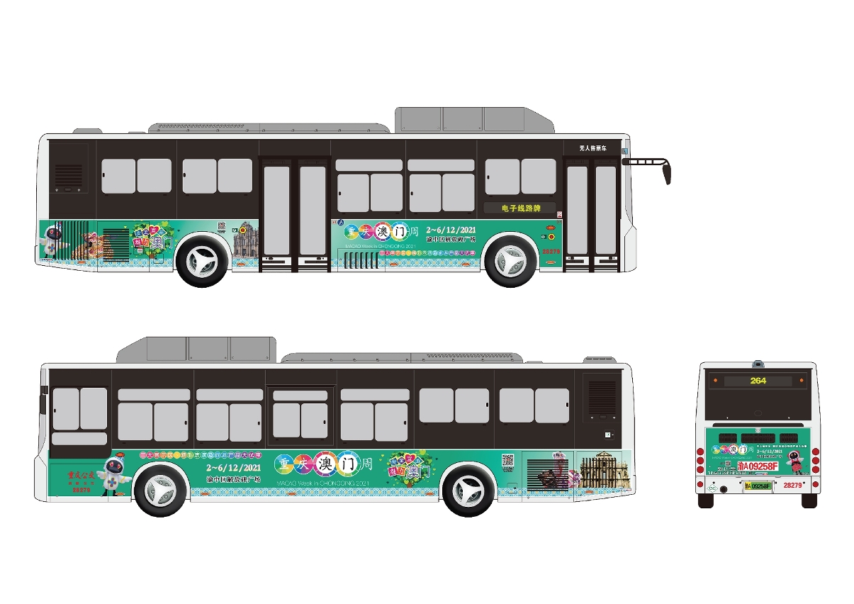 Transit marketing is an itinerant way to advertise and reach a wide audience. Advertisements are hence placed upon numerous buses to promote the “Macao Week in Chongqing”, “Macao Light Festival 2021 – Travellers from Mars” and “Light up Macao Drone Gala”. The bus routes cover Jiefangbei Central Business District, other major business districts, avenues and tourist attractions. Lightbox advertisements are also placed at MTR stations.