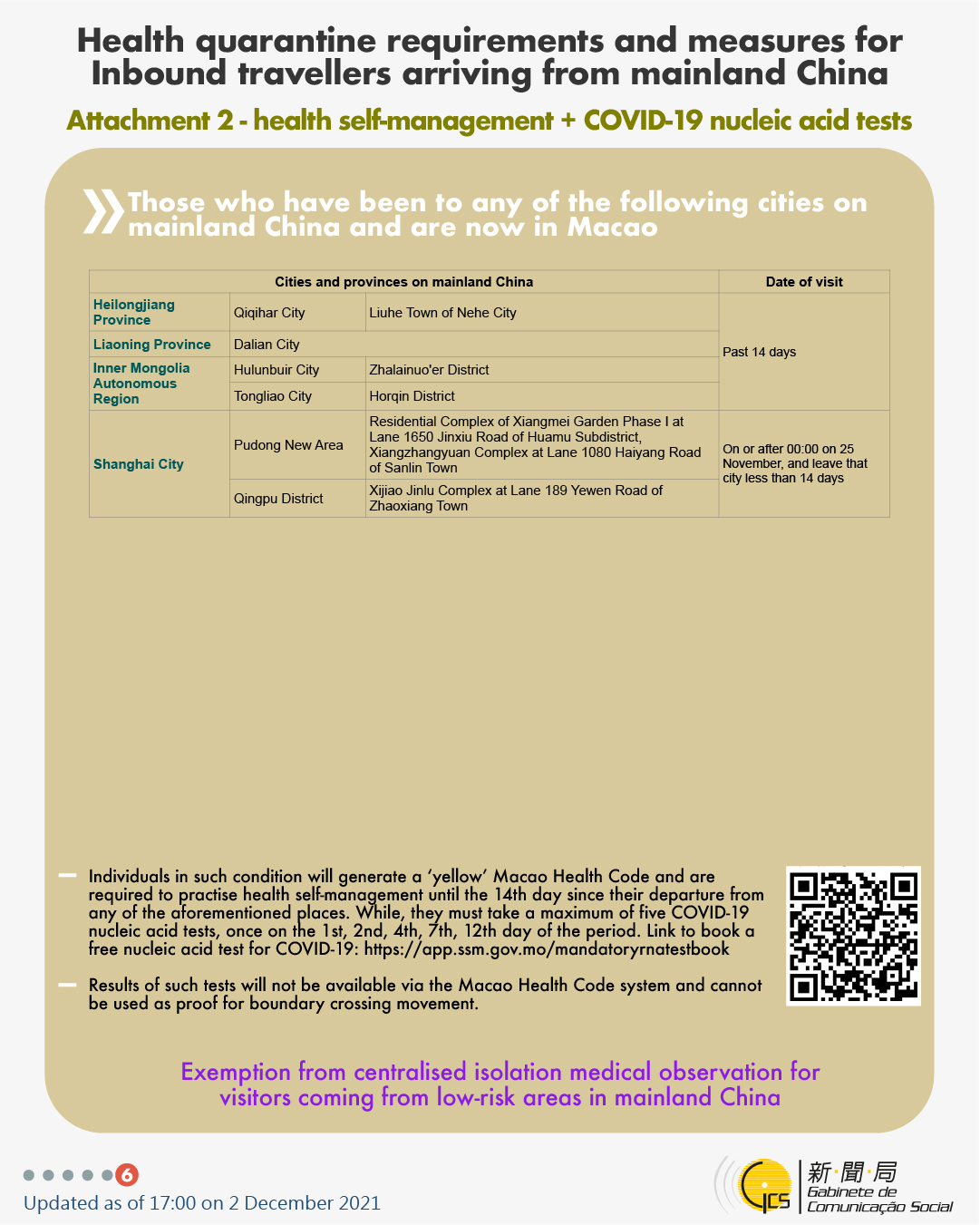 [infographic] 3 December 2021 health quarantine requirements and measures for inbound travellers of different identities.