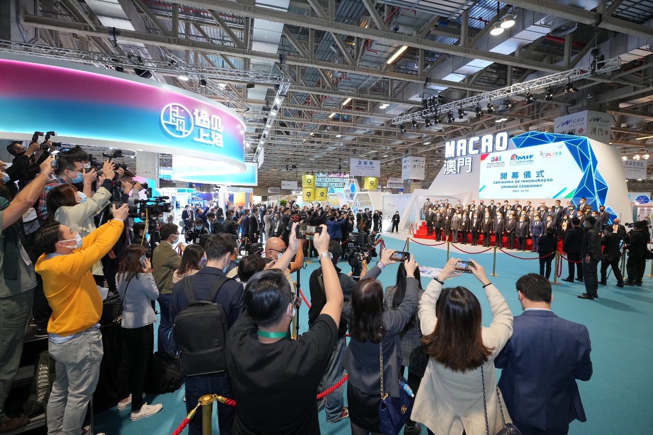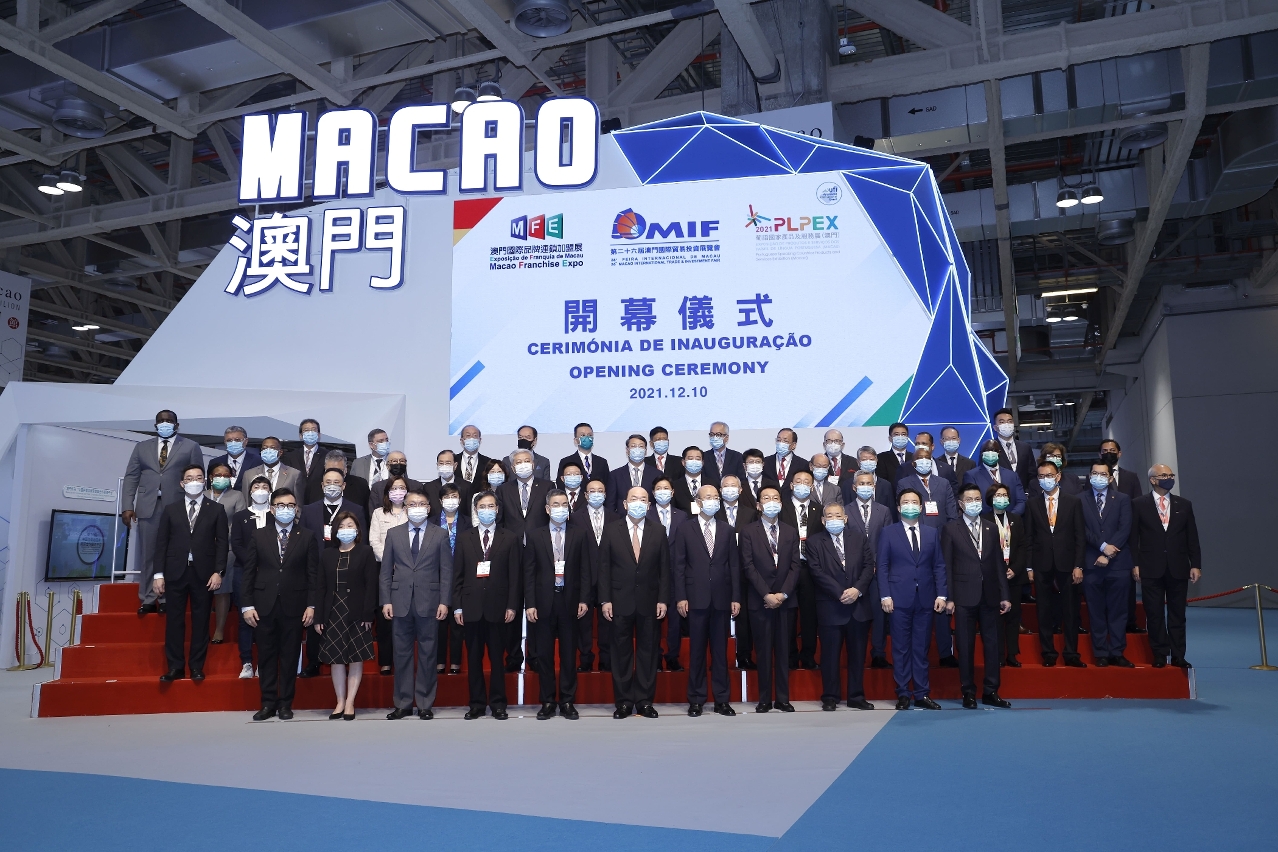 The opening ceremony of the “26th Macao International Trade and Investment Fair” (26th MIF), the “Macao Franchise Expo 2021” (2021MFE) and the “2021 Portuguese Speaking Countries Products and Services Exhibition (Macao)” (2021PLPEX) was held at Expo Hall B (Macao Pavilion) of The Venetian Macao at 12:00 pm today (10 Dec). This year’s three exhibitions are once again held concurrently at the same venue, combining the advantages of both online and offline platforms of the three exhibitions to help traders from all over the world to seize business opportunities through the MICE co-operation and exchange platform.