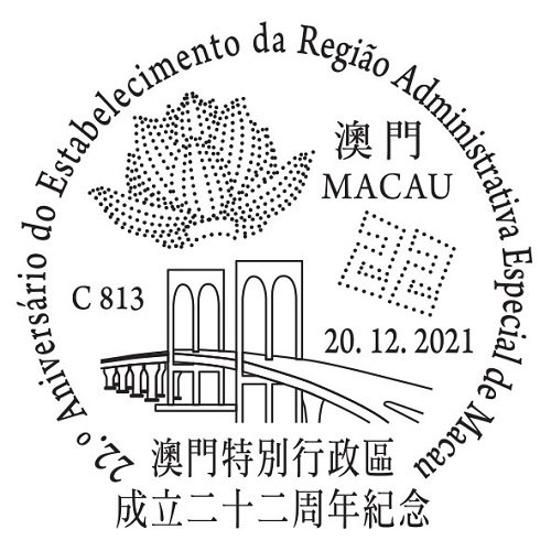 To celebrate the 22nd Anniversary of the Establishment of the Macao Special Administrative Region, Macao Post and Telecommunications Bureau announces that a Temporary Post Counter will be set up at our Philatelic Shop of General Post Office, from 09:00 to 15:00 on 20th December 2021 to provide the commemorative postmark cancellation service for the “22nd Anniversary of the Establishment of the Macao Special Administrative Region”. A commemorative envelope priced at MOP3.00 will be issued.