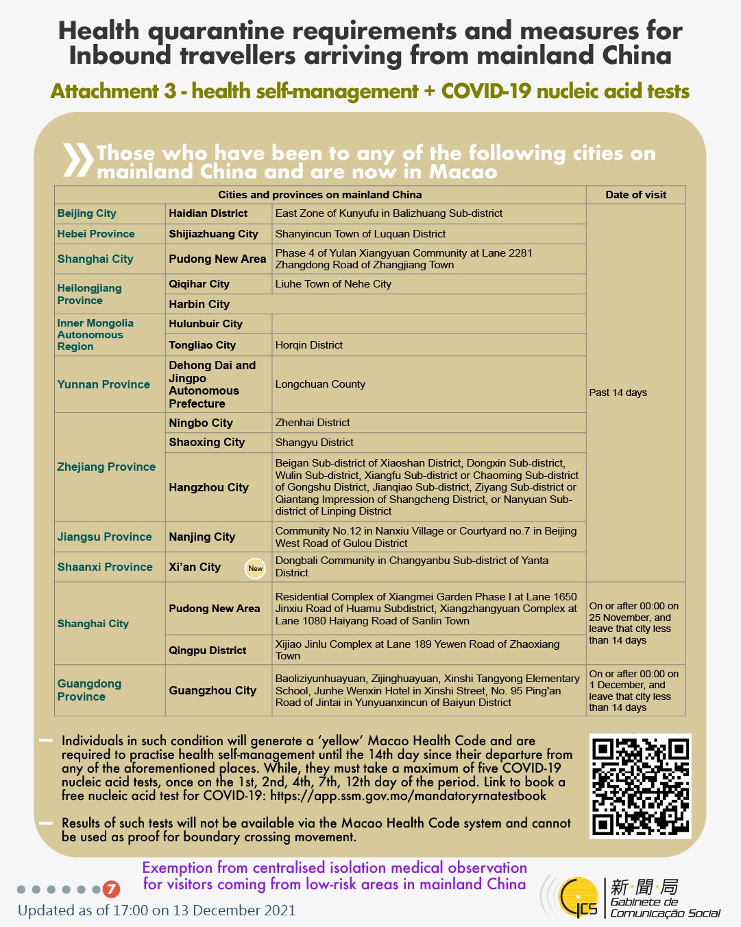 [infographic] 13 December 2021 health quarantine requirements and measures for inbound travellers of different identities.