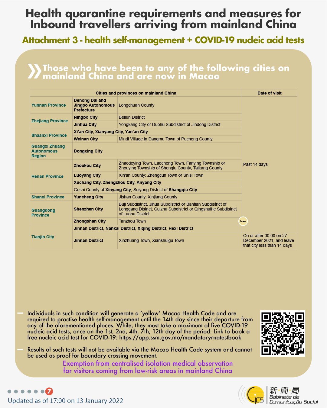 [infographic] 13 January 2022 health quarantine requirements and measures for inbound travellers of different identities.