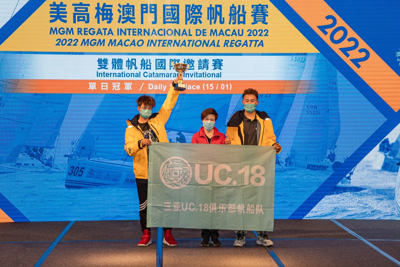 Participating teams entered the third day of the 2022 MGM Macao International Regatta fighting for the lead in the standings. Muwu BBQ, Hua Yun Health Care Sailing Team and Sanya UC.18 Sailing Team will go into the final day tomorrow as the overall leaders in the Macao Cup International Regatta (Beneteau First 40.7 unified design group), the Guangdong-Hong Kong-Macao Greater Bay Area Cup Regatta (IRC group) and the International Catamaran Invitational (Hobie 16 unified design group), respectively.
