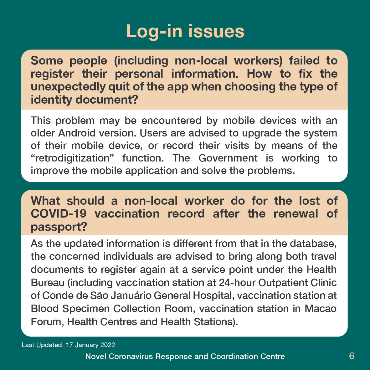 Wechat page (simplified Chinese): macaoinfo 澳門特區發佈