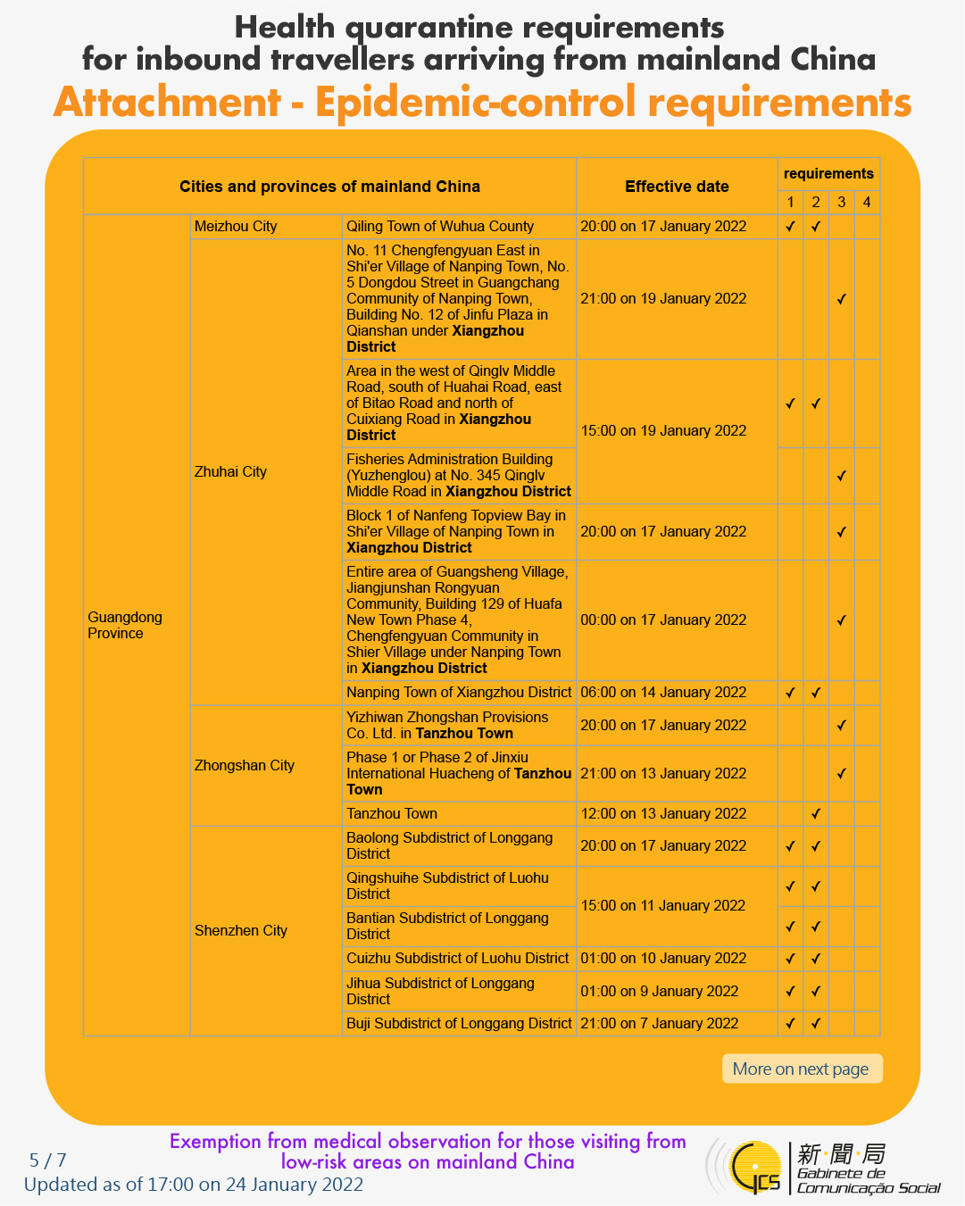 [infographic] 24 January 2022 health quarantine requirements and measures for inbound travellers of different identities.
