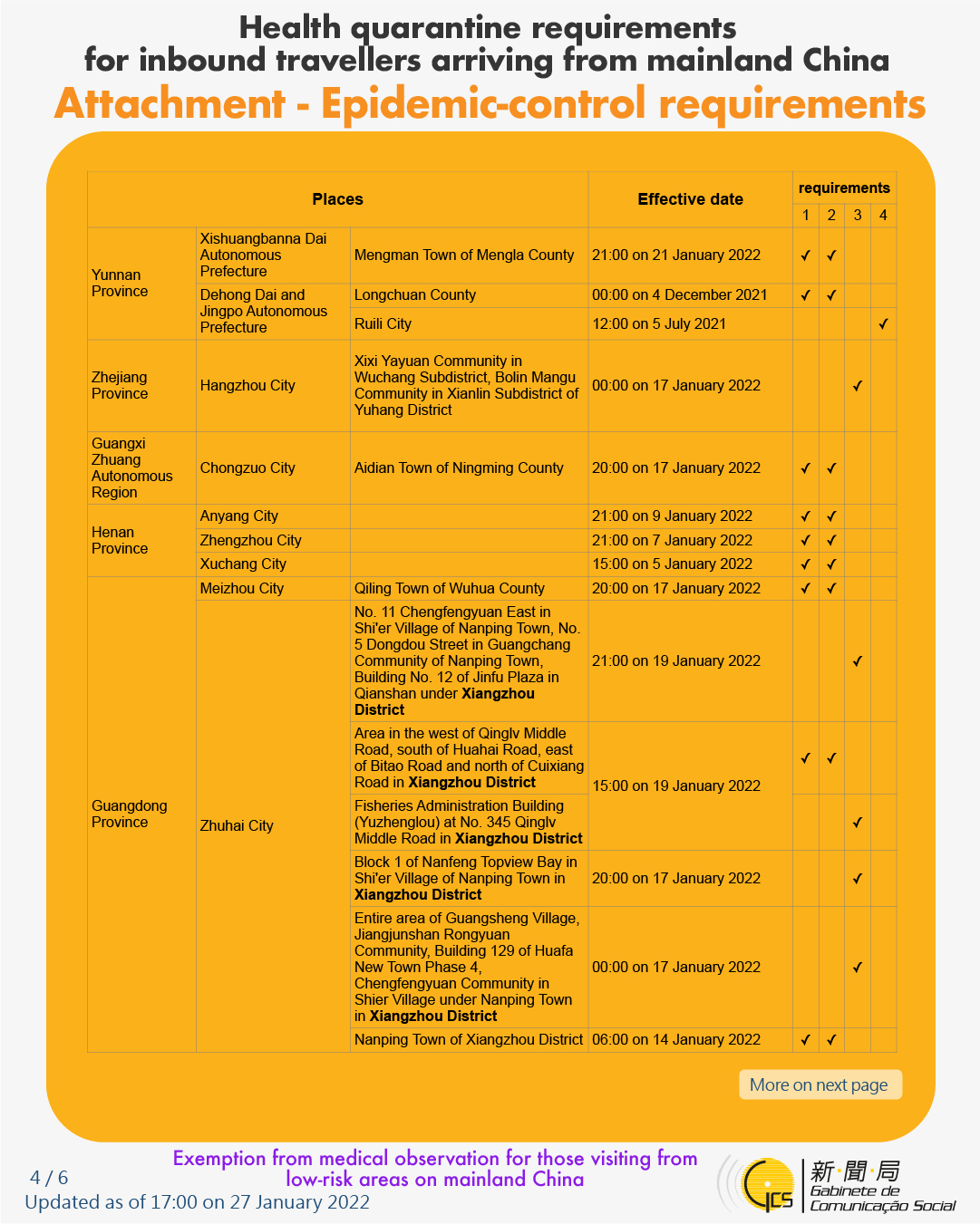 [infographic] 27 January 2022 health quarantine requirements for inbound travellers of different identities.