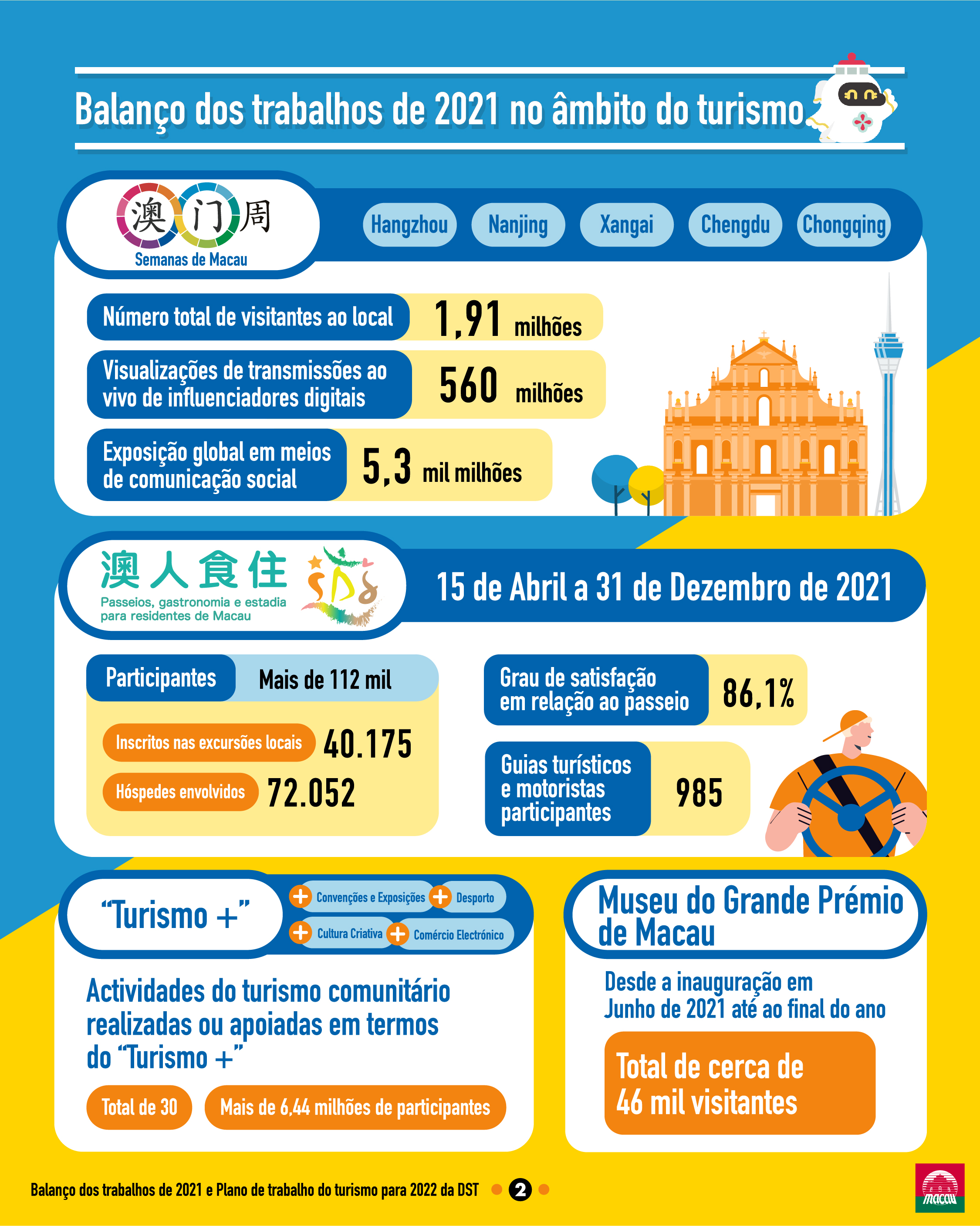 For MGTO’s work review in 2021 and major work plan in 2022, please refer to MGTO’s annual work report in PowerPoint on Macao Tourism Industry Net: https://industry.macaotourism.gov.mo/file/pdf/2022_Annual_Report.pdf.