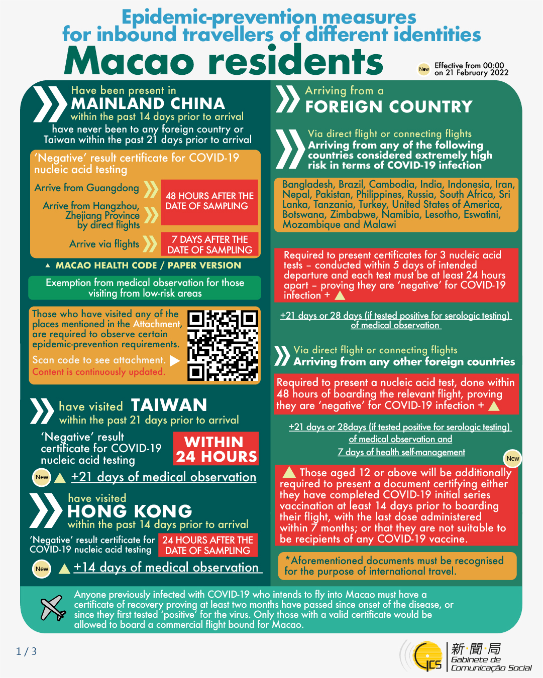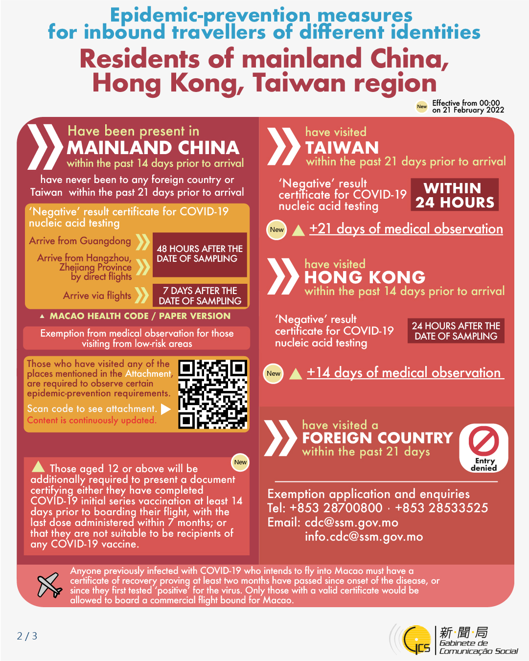 [infographic] 16 February 2022 epidemic-prevention measures for inbound travellers of different identities