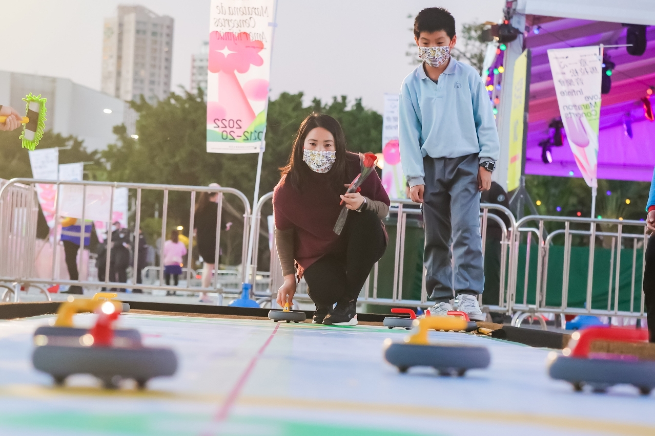 In addition to the stage performance, the event also featured a wide range of creative elements to enhance the audience experience. With the love-theme decorations, it attracted members of the public to take photos. The United Association of Food and Beverage Merchants of Macao brought a variety of creative food and beverages, and presented festive food on the day of the Lantern Festival, which delighted the audience in the event. Workshops and interactive game booths were set up at the event site, infusing cultural and creative elements to the event, drawing the active participation of couples and families. The series of workshops reached more than 500 participants throughout the days of the event. The Cultural Affairs Bureau thanked the Sports Bureau for its support for the event as well as for bringing the mascot of the Beijing 2022 Winter Olympics “Bing Dwen Dwen” to Macao, which drew a large number of visitors to participate in the “Bing Dwen Dwen” lucky draw every day. The curling game was also well received, allowing residents to experience the charm of the Winter Olympics.