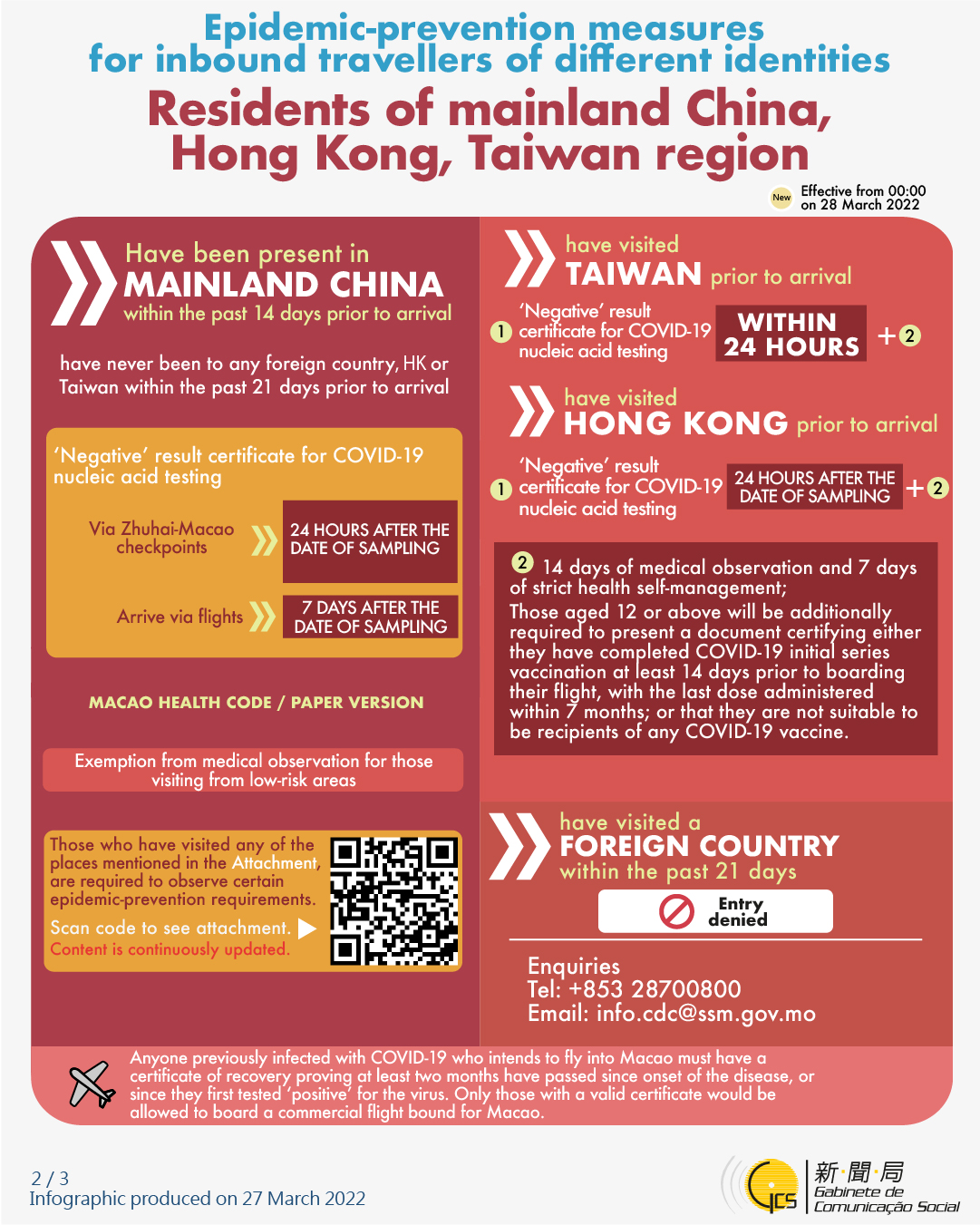 [infographic] 27 March 2022 epidemic-prevention measures for inbound travellers of different identities