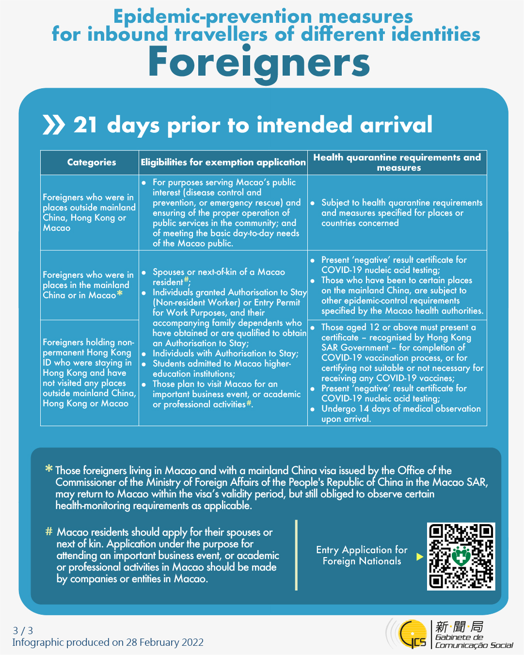 [infographic] 31 March 2022 epidemic-prevention measures for inbound travellers of different identities