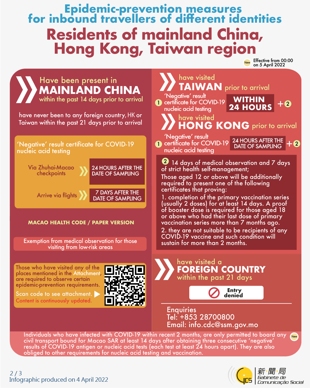 [infographic] 4 April 2022 epidemic-prevention measures for inbound travellers of different identities