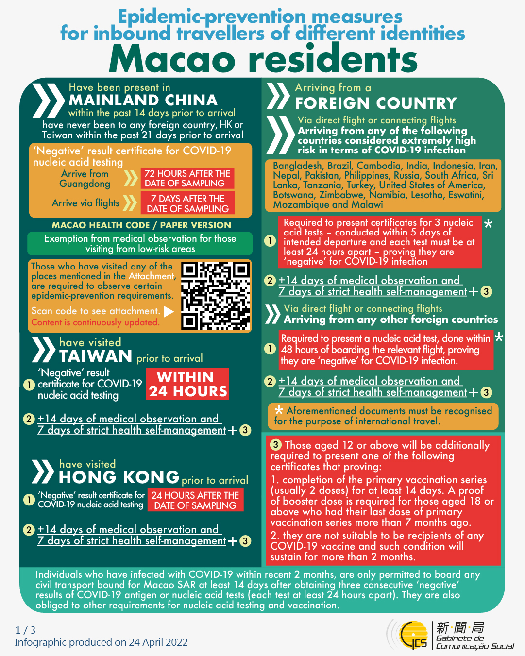 [infographic] 25 April 2022 epidemic-prevention measures for inbound travellers of different identities