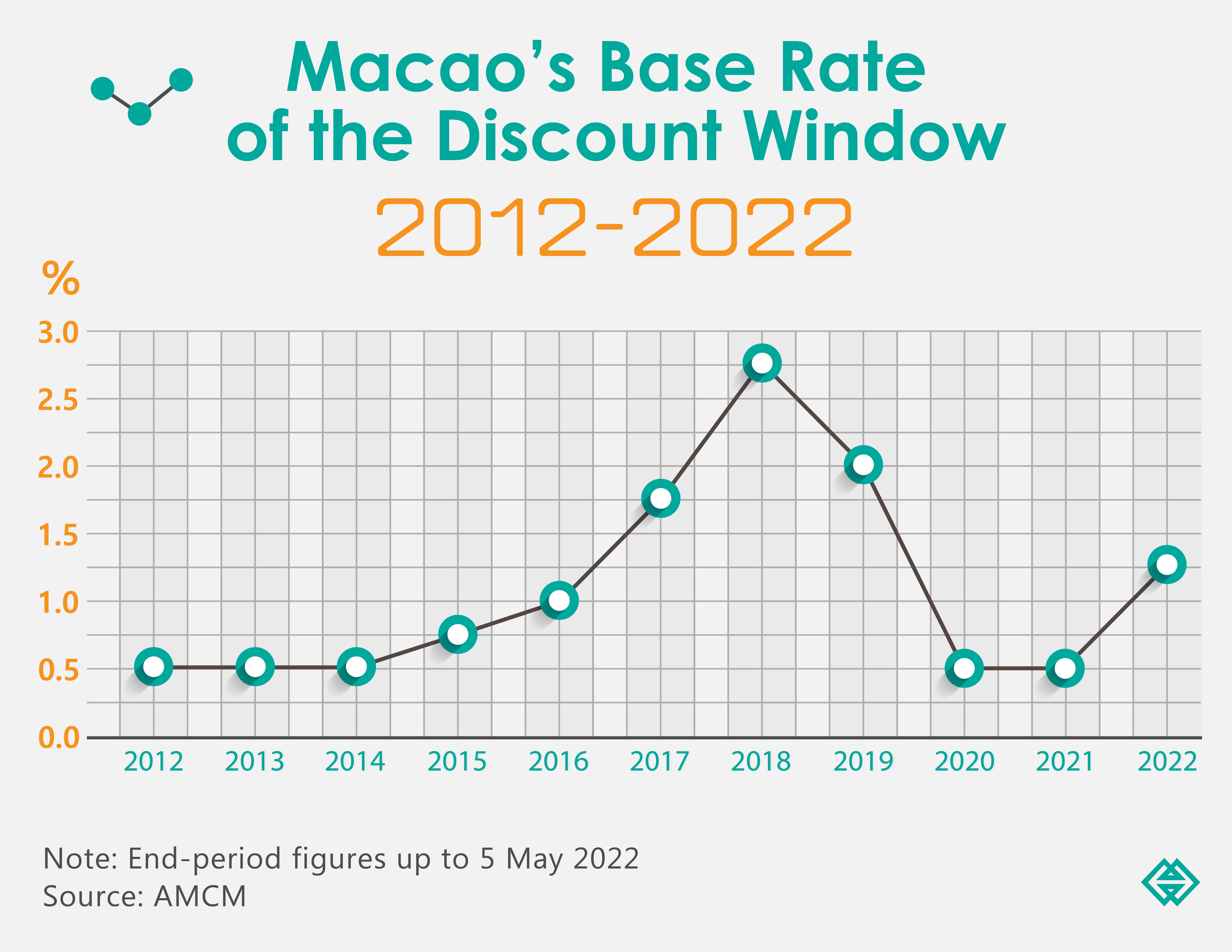 The Monetary Authority of Macao (AMCM) raised the Base Rate of the Discount Window today (5 May 2022) by 50 basis points to 1.25%.