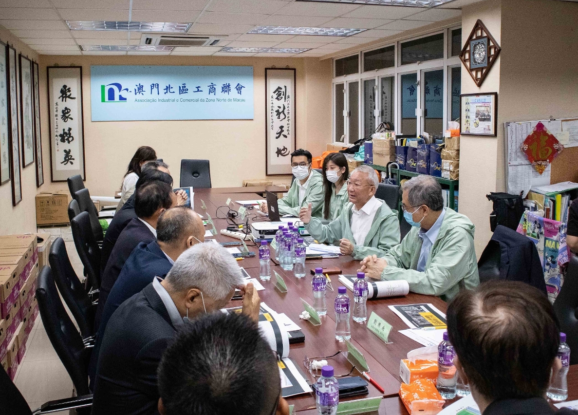 Macau Urban Renewal Limited (MUR) visited the Industry and Commerce Association of Macau Northern District (AICZNM), and was warmly received by the association’s president Wong Kin Chong, director-general Ma Kin Cheong and chair of the supervisory board U Cheok Un. During the meeting, MUR Chairperson of the Board of Directors Peter Lam Kam Seng, Vice-Chairperson Leong Keng Seng, Senior Architect Nick Chan Hoi Wa and Urban Planner Joyce Tam Hoi Ian gave a presentation on the local area plan for Iao Hon Estate.