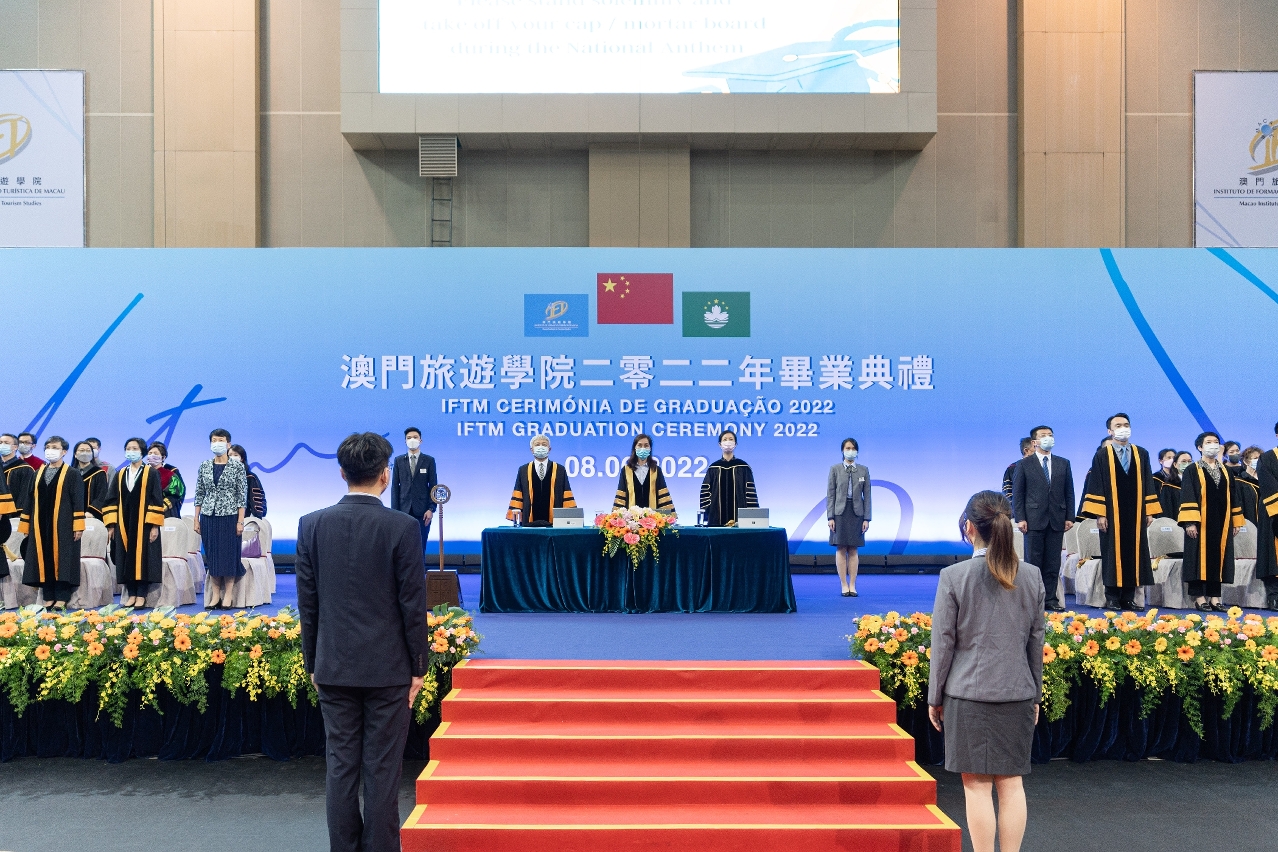 Macao Institute for Tourism Studies (IFTM) held its Graduation Ceremony 2022 at the Tap Seac Multisport Pavilion on 8 June. A total of 468 graduating students of Master of Science (MSc), postgraduate, undergraduate, and diploma programmes received their degrees, embarking on a new journey in life amid the cheers, applause and blessings of the faculty, their relatives and friends, as well as guests from all walks of life.