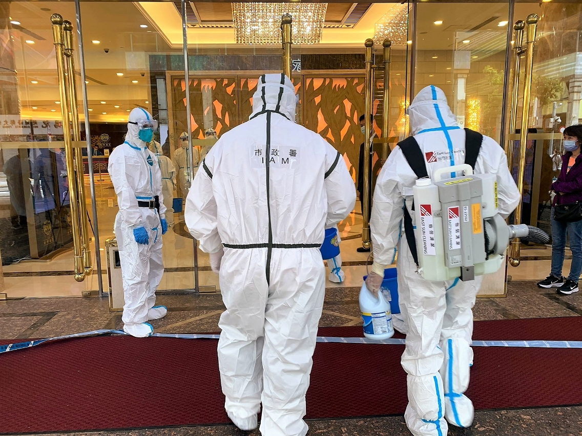 In view of the newest development of the novel coronavirus pandemic and in compliance with the prevention and control work, the Municipal Affairs Bureau (IAM) immediately coordinated with the Macao Residue System Company, Ltd. and cleaning contractors to send more staff to carry out large-scale cleaning and disinfection work in areas such as the nearby streets and the common areas in the buildings of the residences and work locations of the confirmed cases in the small hours today (21 June), so as to reduce the conditions of the spread of the pandemic as much as possible.