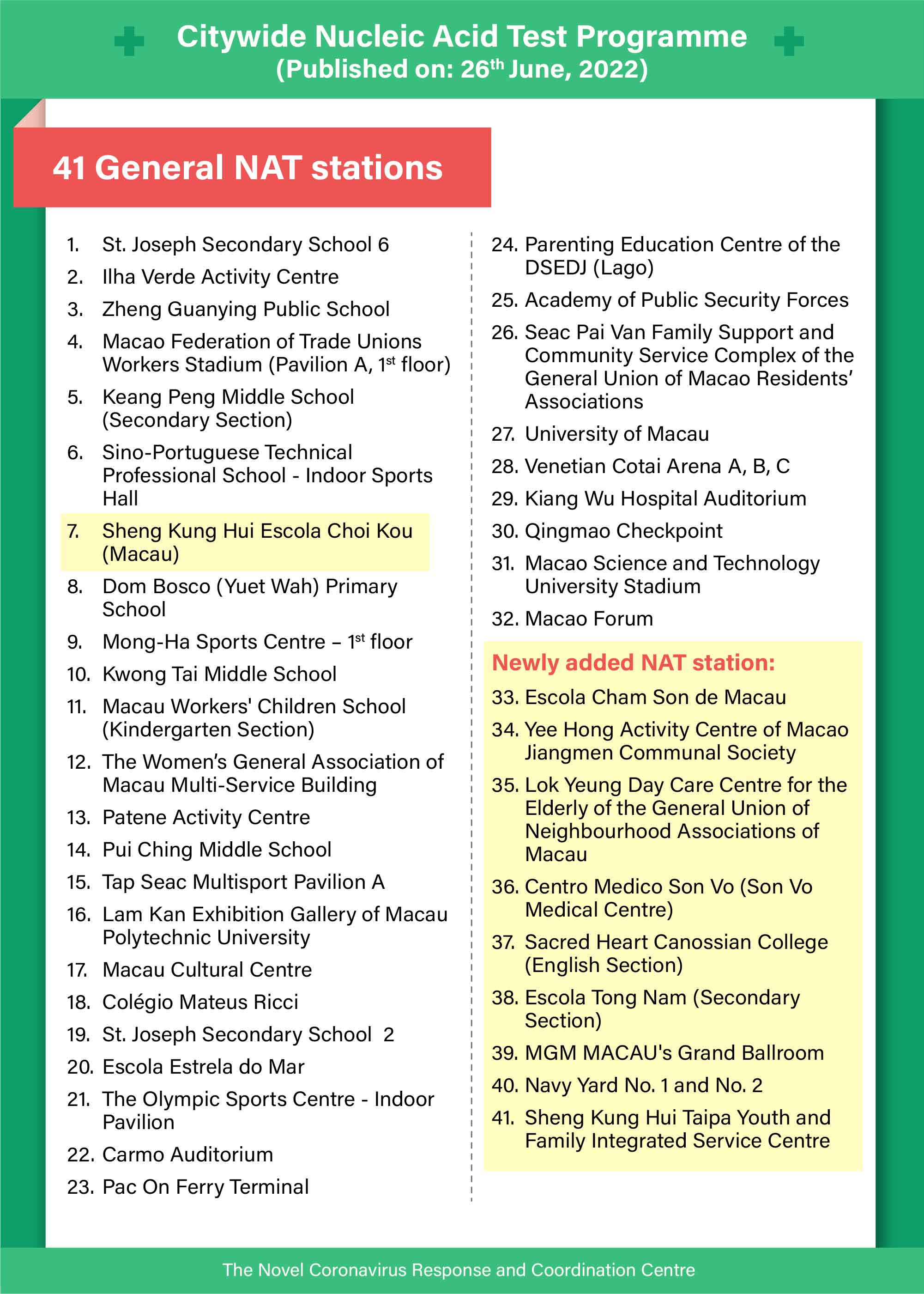 To get the latest official news, please subscribe the Government Information Bureau’s Telegram News Channel at https://t.me/macaogcsEN.