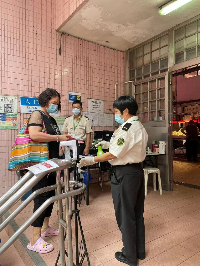 The Municipal Affairs Bureau (IAM) requires hawkers in all markets and hawker areas to complete rapid antigen tests every day before opening, with inspection staff continuing to step up inspections. At the same time, publicity messages on pandemic prevention are continuously broadcast in various markets and hawker areas, calling on the public to cooperate with pandemic prevention work and reduce crowd gatherings. Security guards stationed at the entrances of the markets also provide disinfectant alcohol to residents entering the markets to further increase protection.