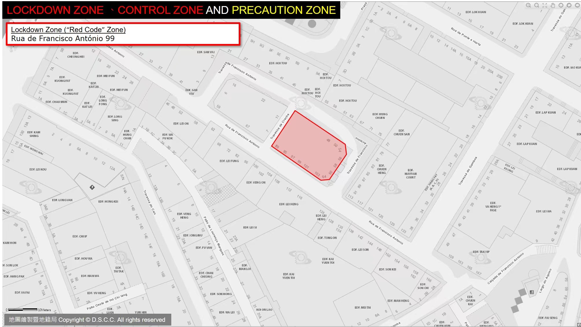 EDF. SAN MEI ON: Rua Cinco do Bairro da Areia Preta 16-28, Rua Dois do Bairro da Areia Preta 55-67, Rua Três do Bairro da Areia Preta 56-68 |