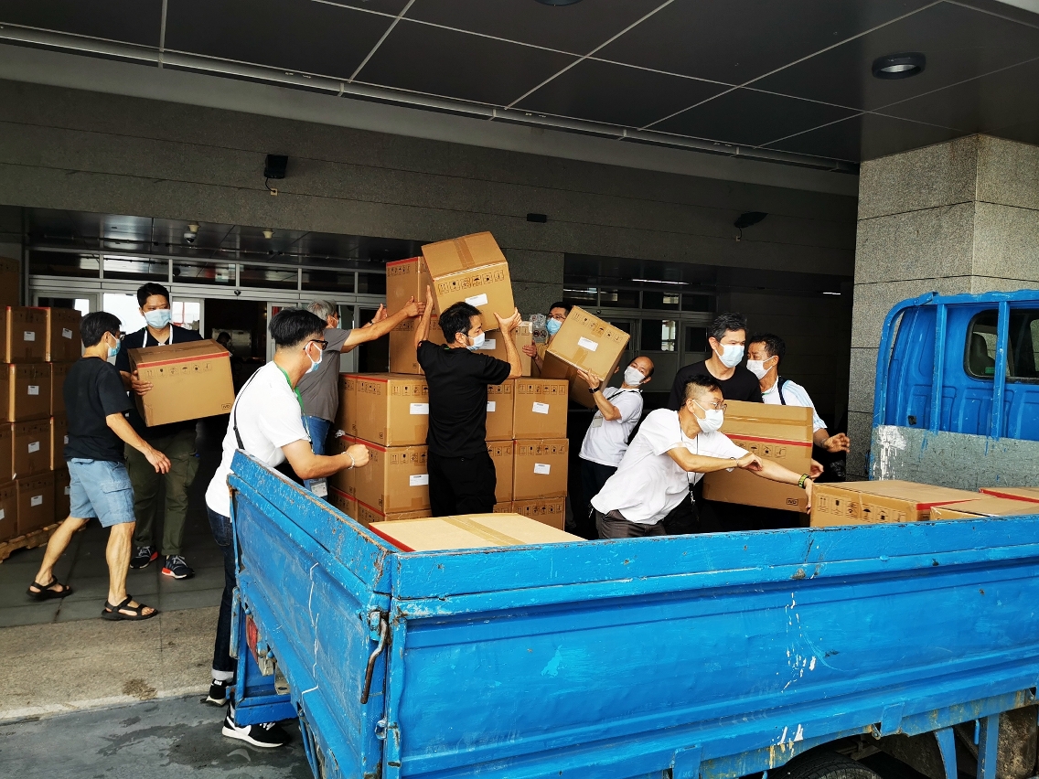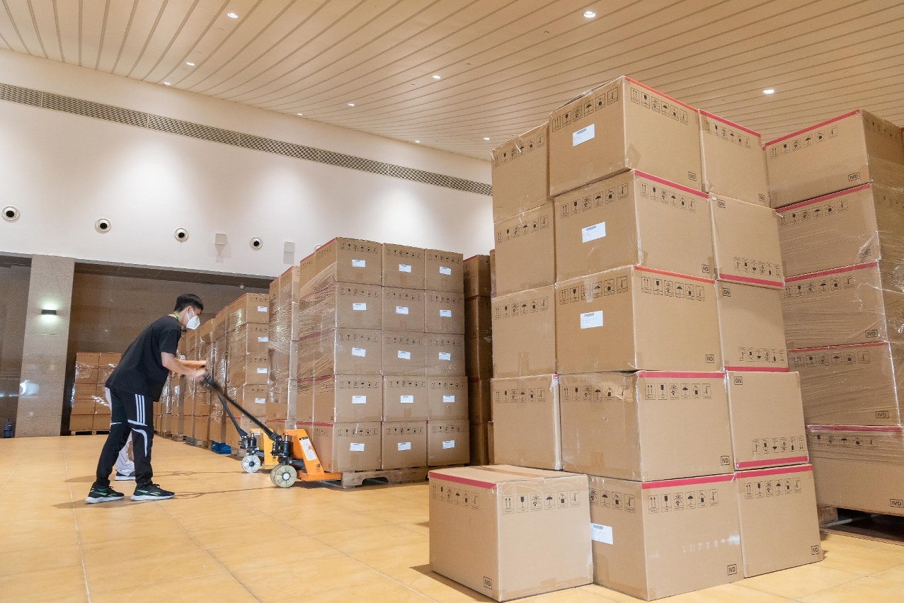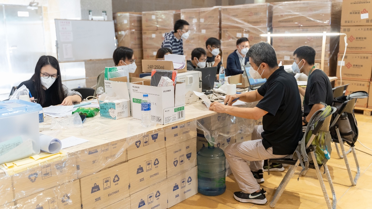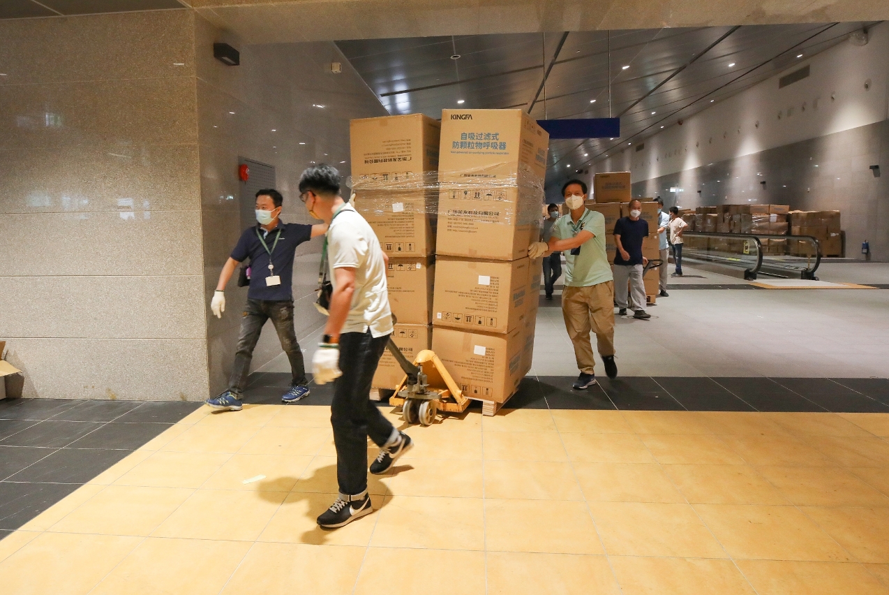 From Day 1 of the first round of Citywide NAT programme on 19 June, the delivery staff have been working continuously to distribute RAT kits and masks from the temporary warehouse at Pac On Terminal to the NAT sampling stations as well as the red-coded zones.