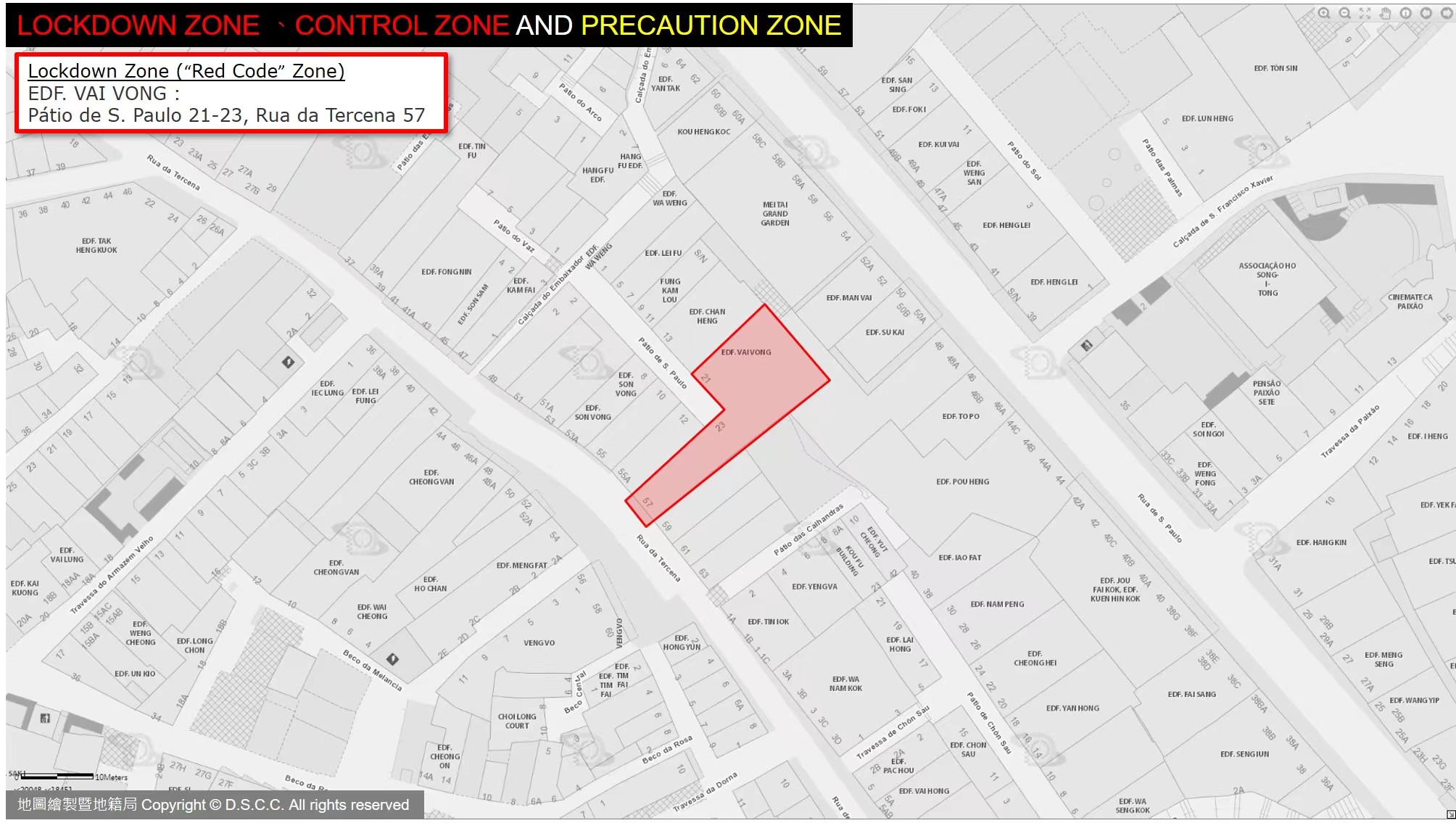 EDF. SAN MEI ON: Rua Cinco do Bairro da Areia Preta 16-28, Rua Dois do Bairro da Areia Preta 55-67, Rua Três do Bairro da Areia Preta 56-68 |