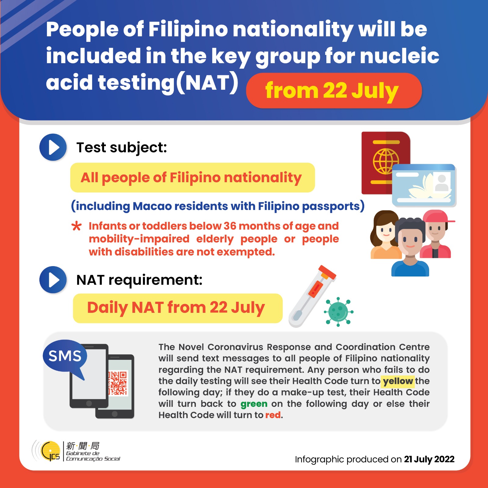 • People of Filipino nationality will be included in the key group for nucleic acid testing (NAT) from 22 July