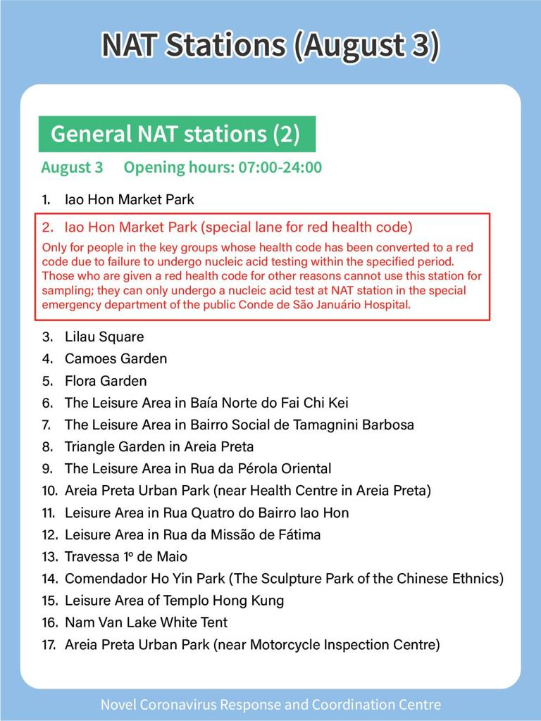 | Self-paid sampling stations (prior booking is required; result will be uploaded to Macao Health Code and paper report can be provided) |
