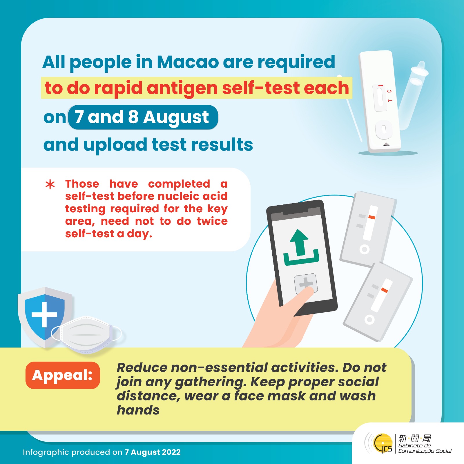 • [Infographic] All people in Macao are required to do rapid antigen self-test each on 7 and 8 August and upload test results