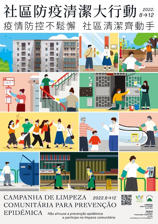 With “Stay vigilant in epidemic prevention and control, join community cleaning together” as its slogan, the anti-epidemic community cleaning campaign will last for five months. It is hoped that under the context of the normalisation of epidemic prevention, the public in Macao will join hands to maintain the overall environmental hygiene of the community and prevent the potential spread of epidemic diseases.