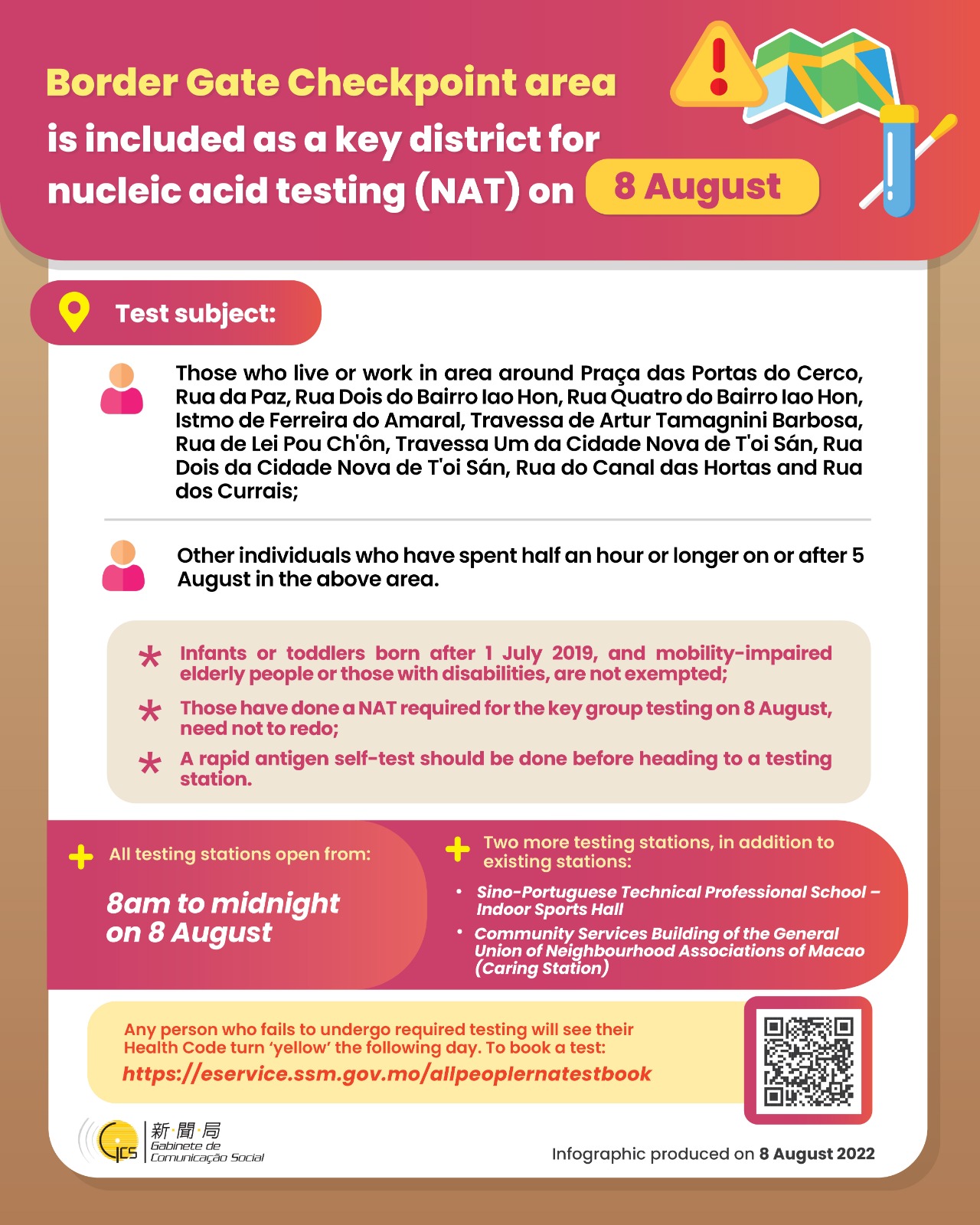 [Infographic] Border Gate Checkpoint area is included as a key district for nucleic acid testing (NAT) on 8 August