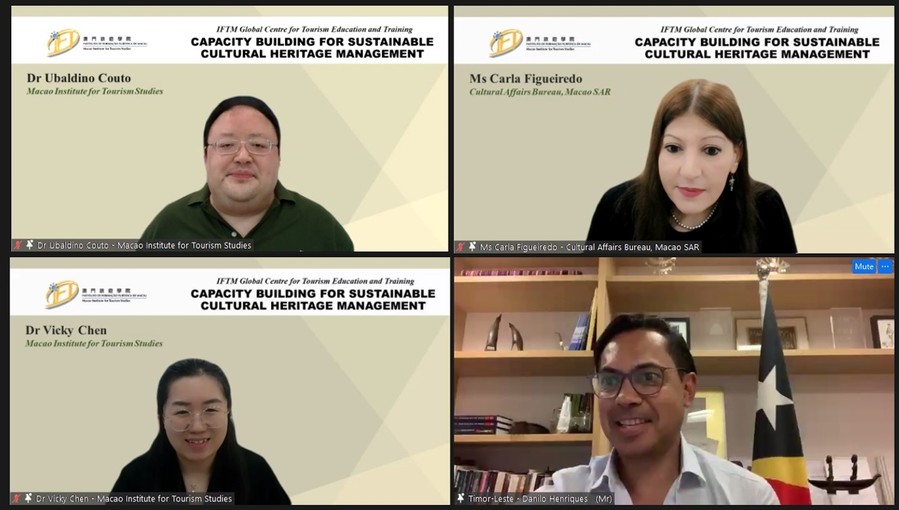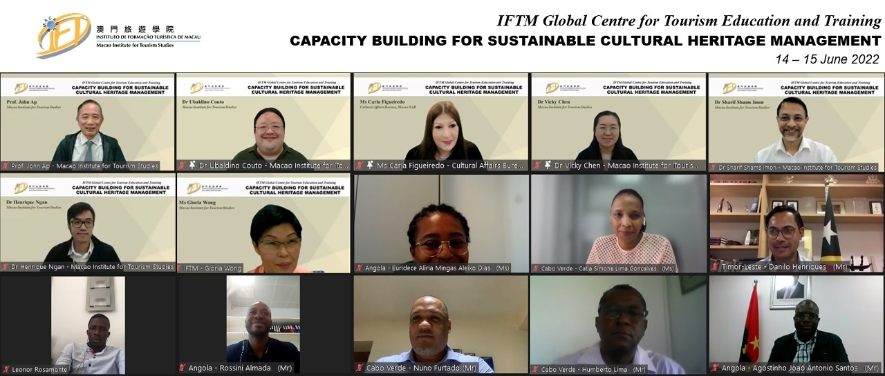 The Global Centre of Tourism Education and Training of the Macao Institute for Tourism Studies (IFTM) successfully held virtually a training programme on 14 – 15 June 2022 on “Capacity Building for Sustainable Cultural Heritage Management”.