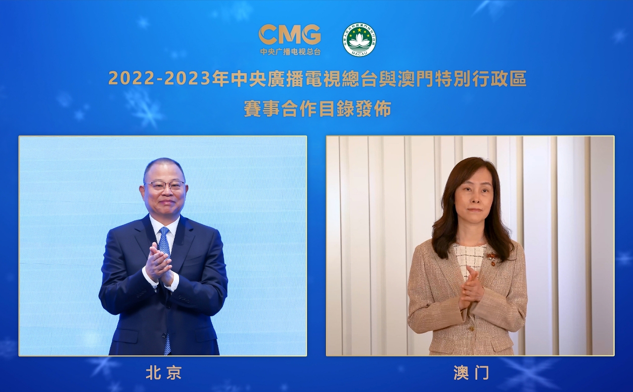 Secretary for Social Affairs and Culture of the MSAR Ms Ao Ieong U and member of CMG’s Editorial Board Mr Xue Jijun jointly published the list of sports events in 2022-2023 to involve cooperation between CMG and the MSAR. It would enable strengthened effort by both sides in terms of organisation of sports events and delegation of authority regarding management of related resources.