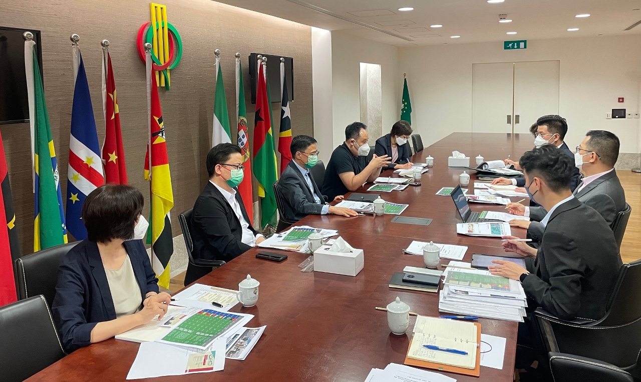 Attendees of the meeting also included Deputy Secretaries-General of the Permanent Secretariat of Forum Macao Ding Tian and Casimiro de Jesus Pinto, Coordinator of the Executive Office Li Xiaohui, Coordinator of the Support Office Teresa Mok, IPIM Executive Director Sam Lei, Senior Manager of Promotional Activities and Development of Conventions and Exhibitions Department Elaine Wong, and Acting Senior Manager of Lusophone Markets Economic and Trade Promotion Department Tang Weng Hei.