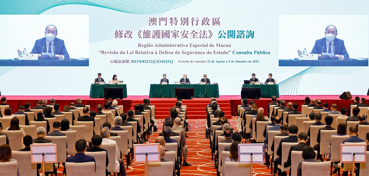 The MSAR Government held the first public consultation session on the amendment to Law No. 2/2009 – “Law on Safeguarding National Security”, to listen to the opinions and suggestions from deputies of the MSAR to the National People's Congress, members of the National Committee of the Chinese People's Political Consultative Conference in Macao, and representatives of the political and legal sector.