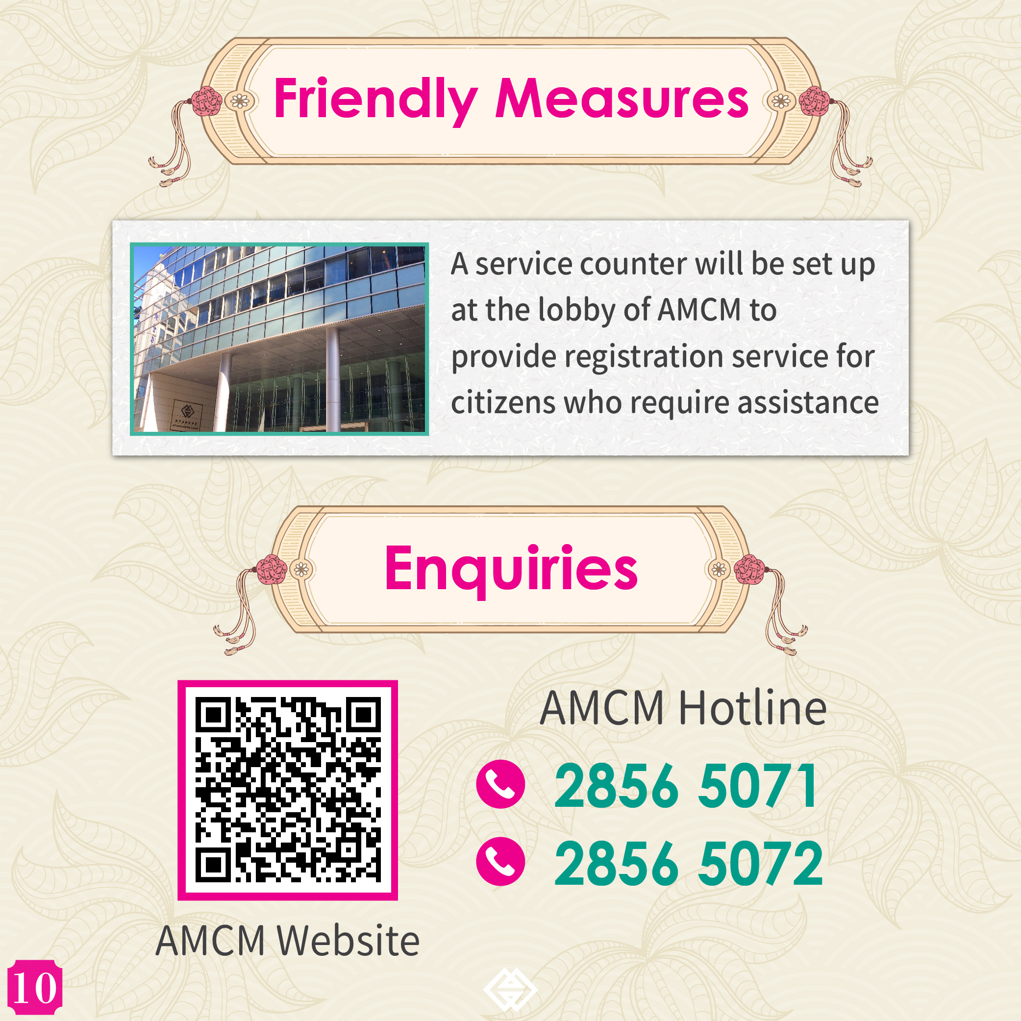 For enquiries, please visit our webpage or call our hotline at 28565071 or 28565072.