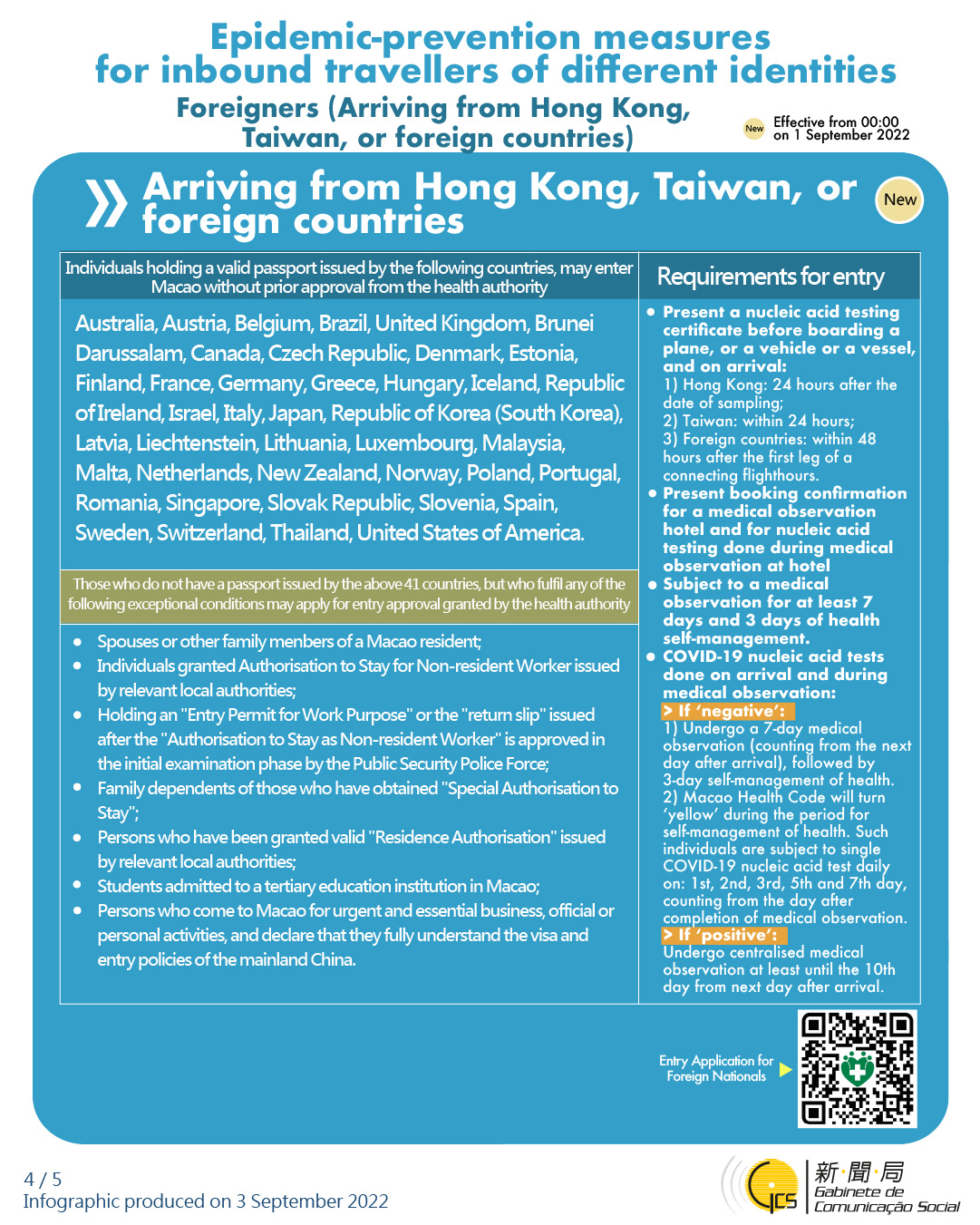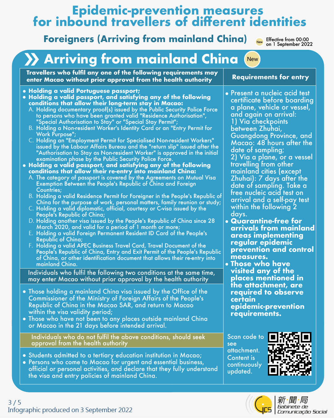 [infographic] Epidemic-prevention measures for inbound travellers of different identities (1 September 2022 )
