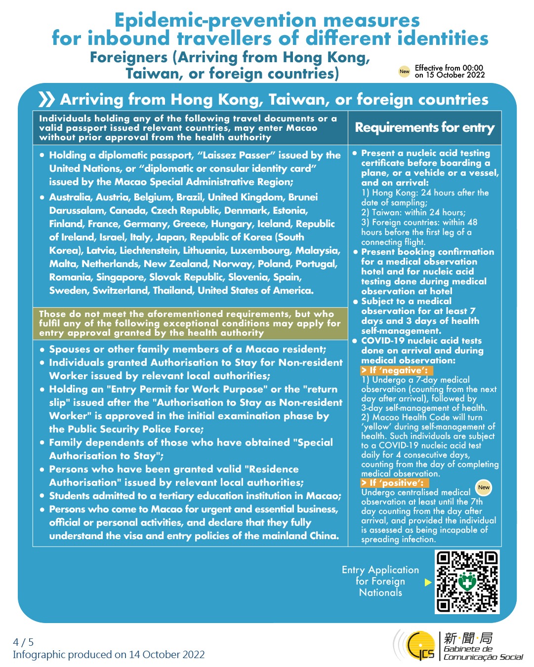 [infographic] Epidemic-prevention measures for inbound travellers of different identities (14 October 2022 )