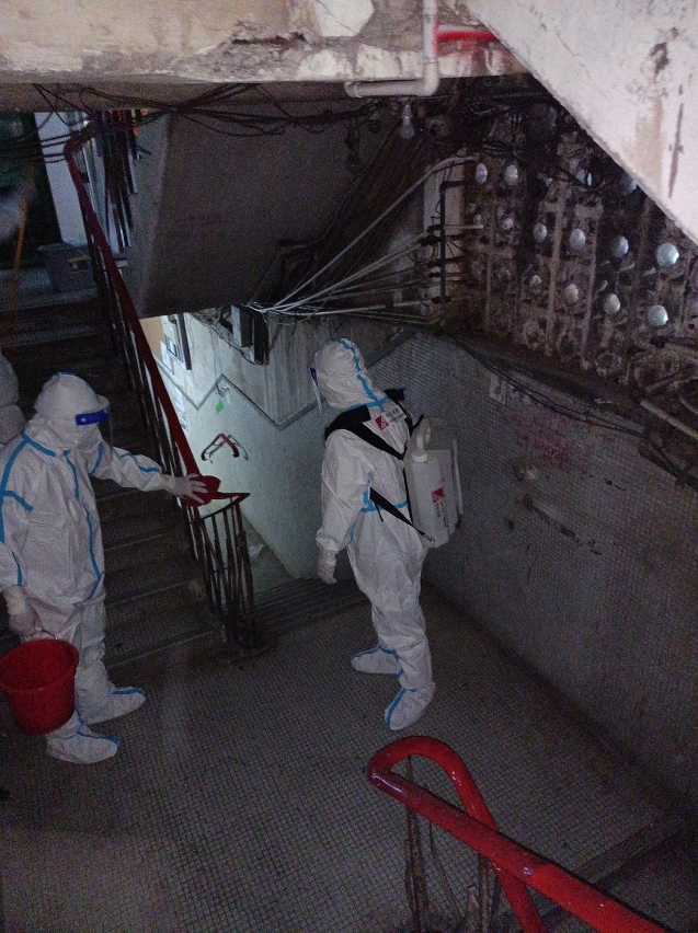 In view of the newest development of the novel coronavirus pandemic and in compliance with the prevention and control work, the Municipal Affairs Bureau (IAM) immediately coordinated with the Macao Residue System Company, Ltd. and cleaning contractors to send more staff to carry out large-scale cleaning and disinfection work in areas such as the buildings of the residences, the nearby streets and the common areas in the residential buildings today (26 October), so as to reduce the conditions of the spread of the pandemic as much as possible.
