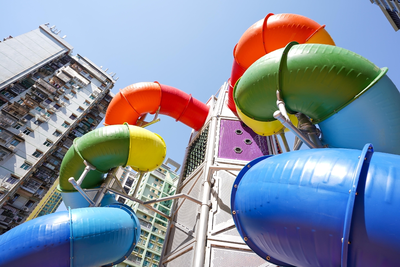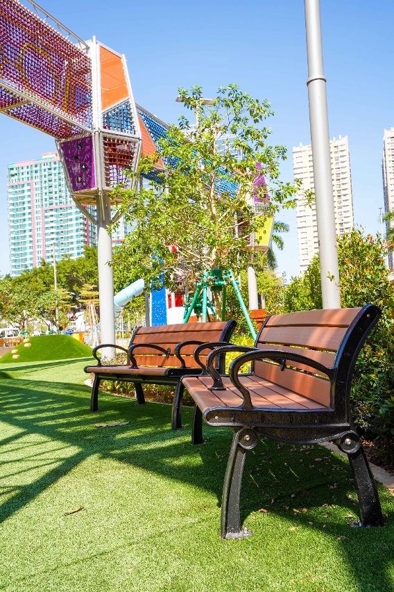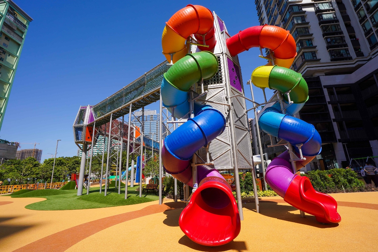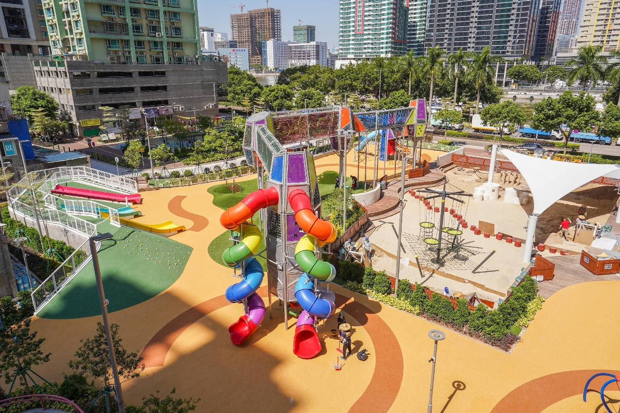 Innovative play facilities are introduced to the children’s playground, including the first outdoor sandpit in Macao Peninsula that would create an environment for mutual assistance and carefree amusement with peers, so that children can easily enjoy the fun of sand and water in the community, and show their creativity in building games with sands. To ensure the safety of young children, those under the age of five must be accompanied by their parents to enter the sandpit. Meanwhile, to control crowds at the early stage after the opening, appointment is required for entering the sandpit. Besides the daily check and cleaning before opening, the sandpit will be closed for maintenance once a month to ensure its quality. There are also a slide area, artificial grass hills and other parent-child play equipment in the playground divided into different zones by age and suitable for children aged 3 to 12 to practise physical coordination and balance. Another group of moderately challenging high-rise play facilities with climbing elements allows older children to learn how to play safely and exercise their physical fitness in the game. IAM has arranged for personnel to maintain order in the playground. Parents and children are advised to follow their instructions and pay attention to safety.