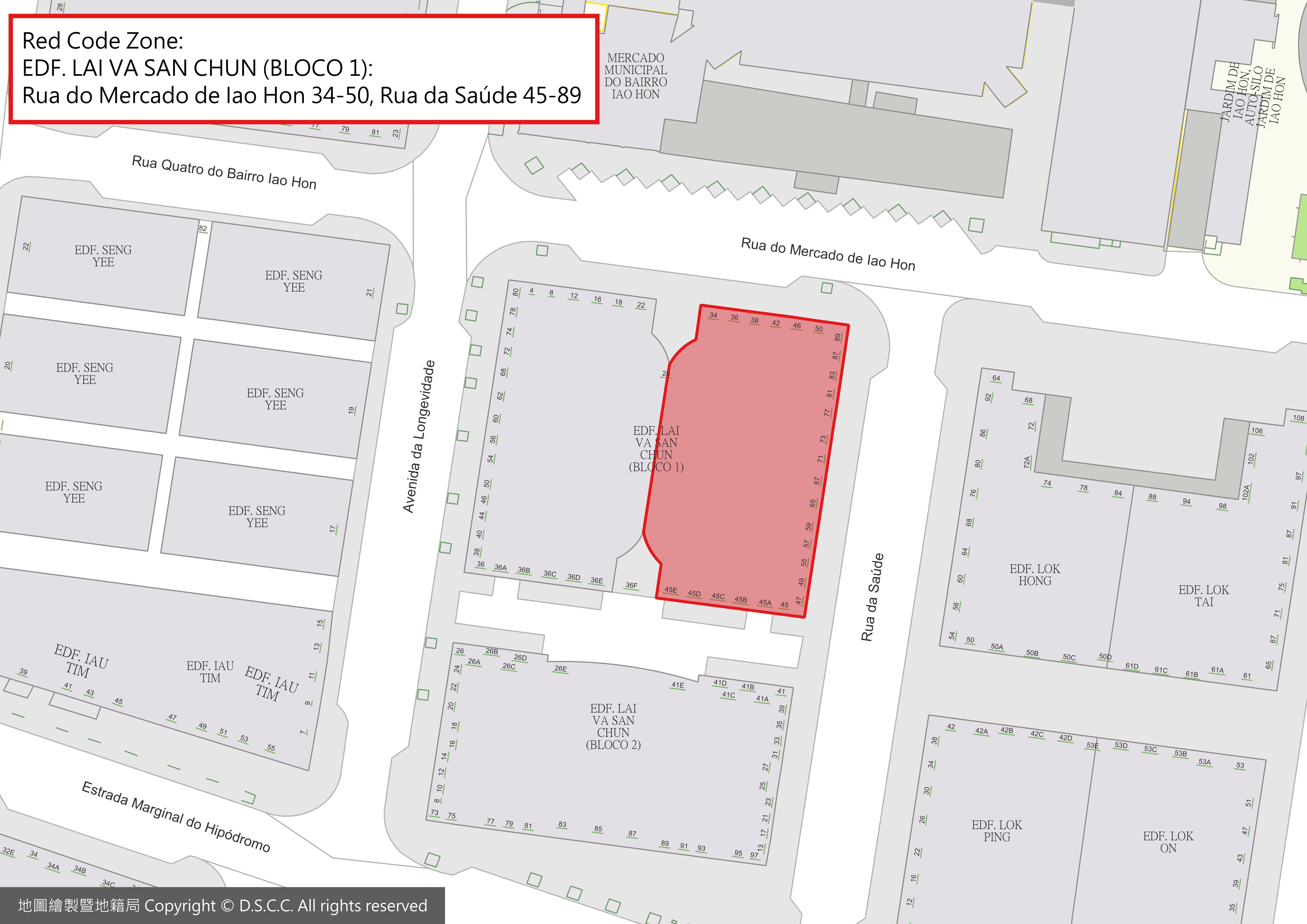 EDF. LAI VA SAN CHUN (BLOCO 1): MERCADO MUNICIPAL DO BAIRRO Rua do Mercado de la Hon 34-50, Rua da Saúde 45-89 |