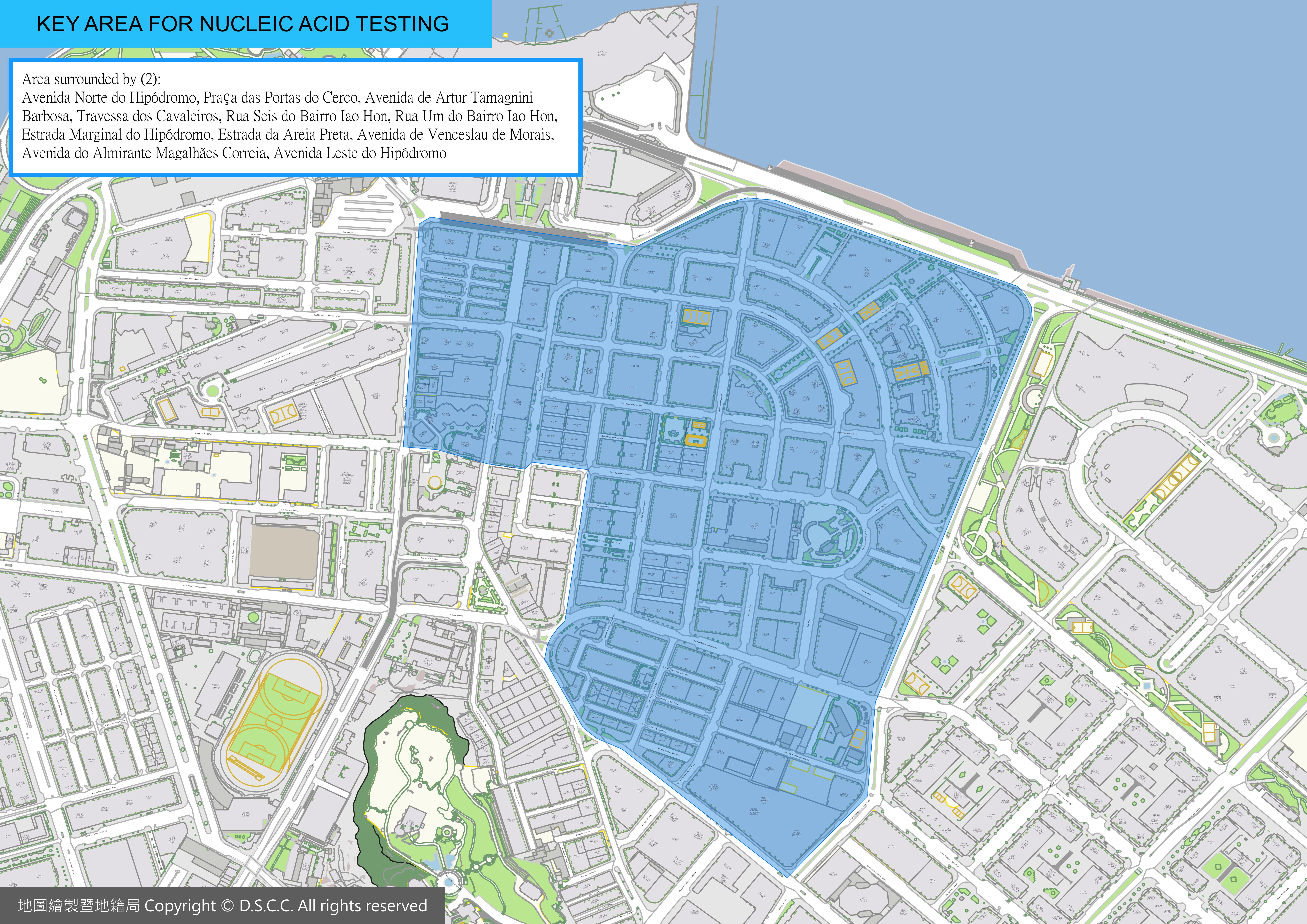 • People who live or work in the area surrounded by Avenida Norte do Hipódromo, Praça das Portas do Cerco, Avenida de Artur Tamagnini Barbosa, Travessa dos Cavaleiros, Rua Seis do Bairro Iao Hon, Rua Um do Bairro Iao Hon, Estrada Marginal do Hipódromo, Estrada da Areia Preta, Avenida de Venceslau de Morais, Avenida do Almirante Magalhães Correia, Avenida Leste do Hipódromo;