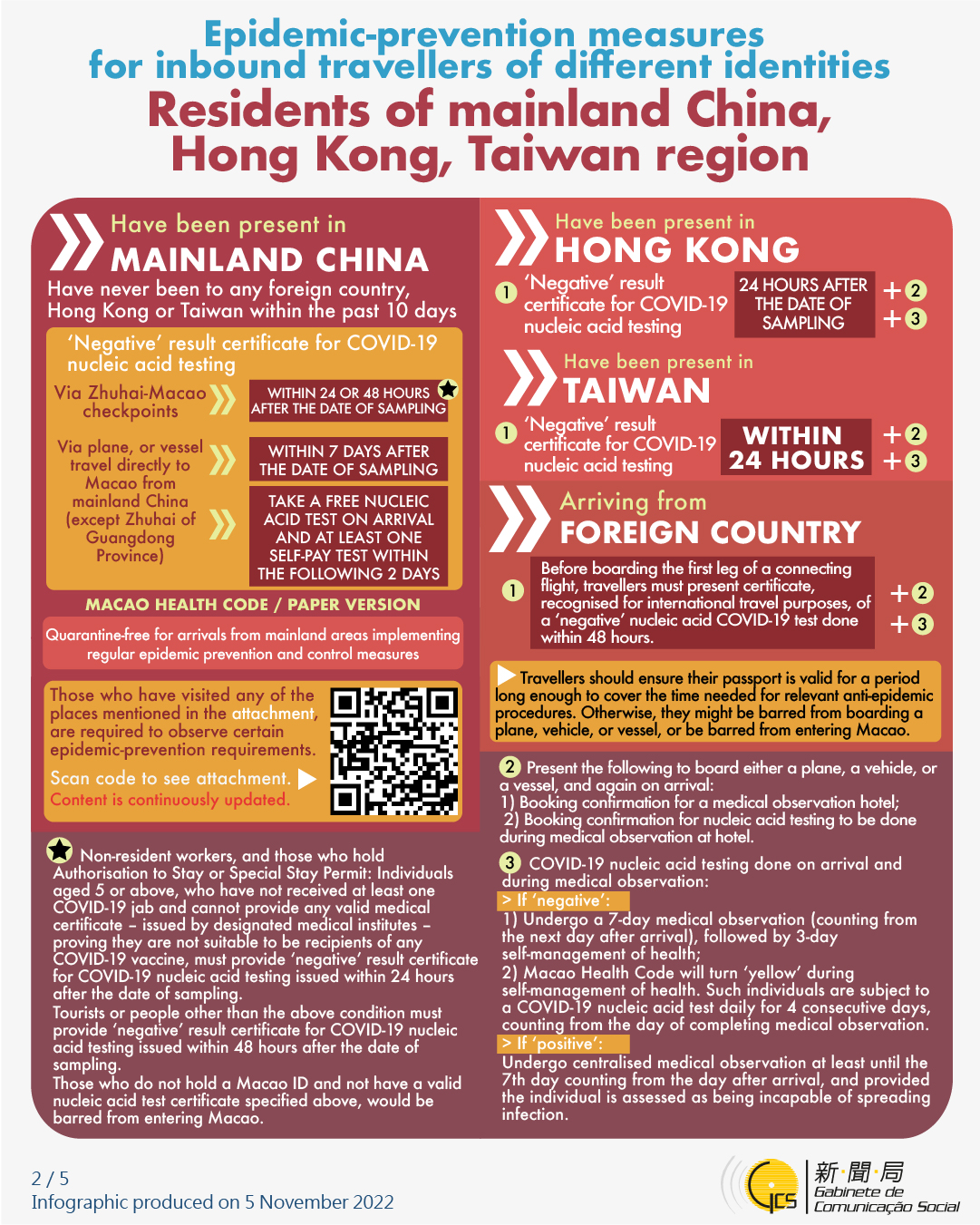 [infographic] Epidemic-prevention measures for inbound travellers of different identities (8 November 2022 )