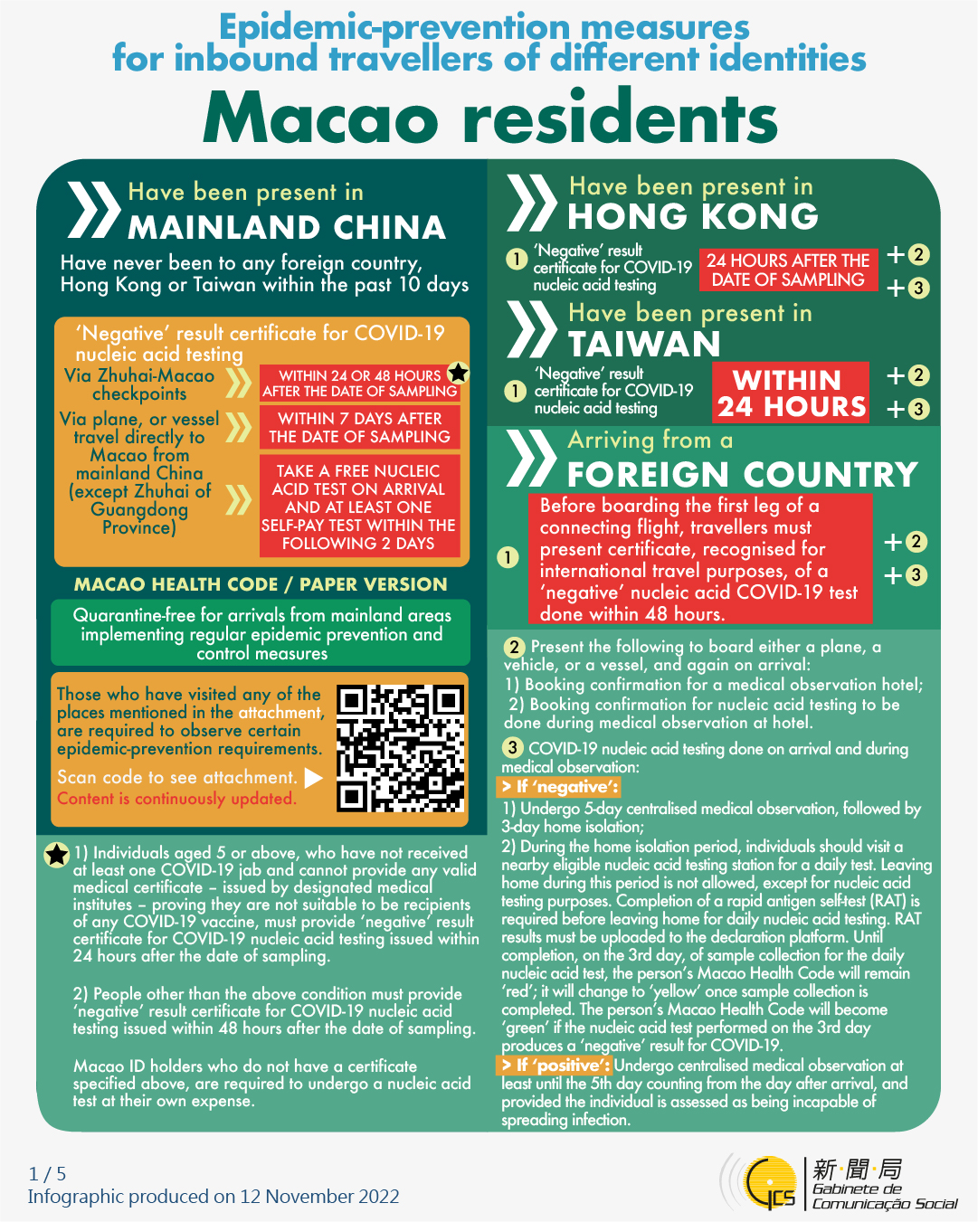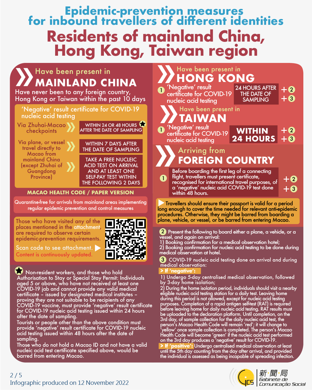 [infographic] Epidemic-prevention measures for inbound travellers of different identities (16 November 2022 )