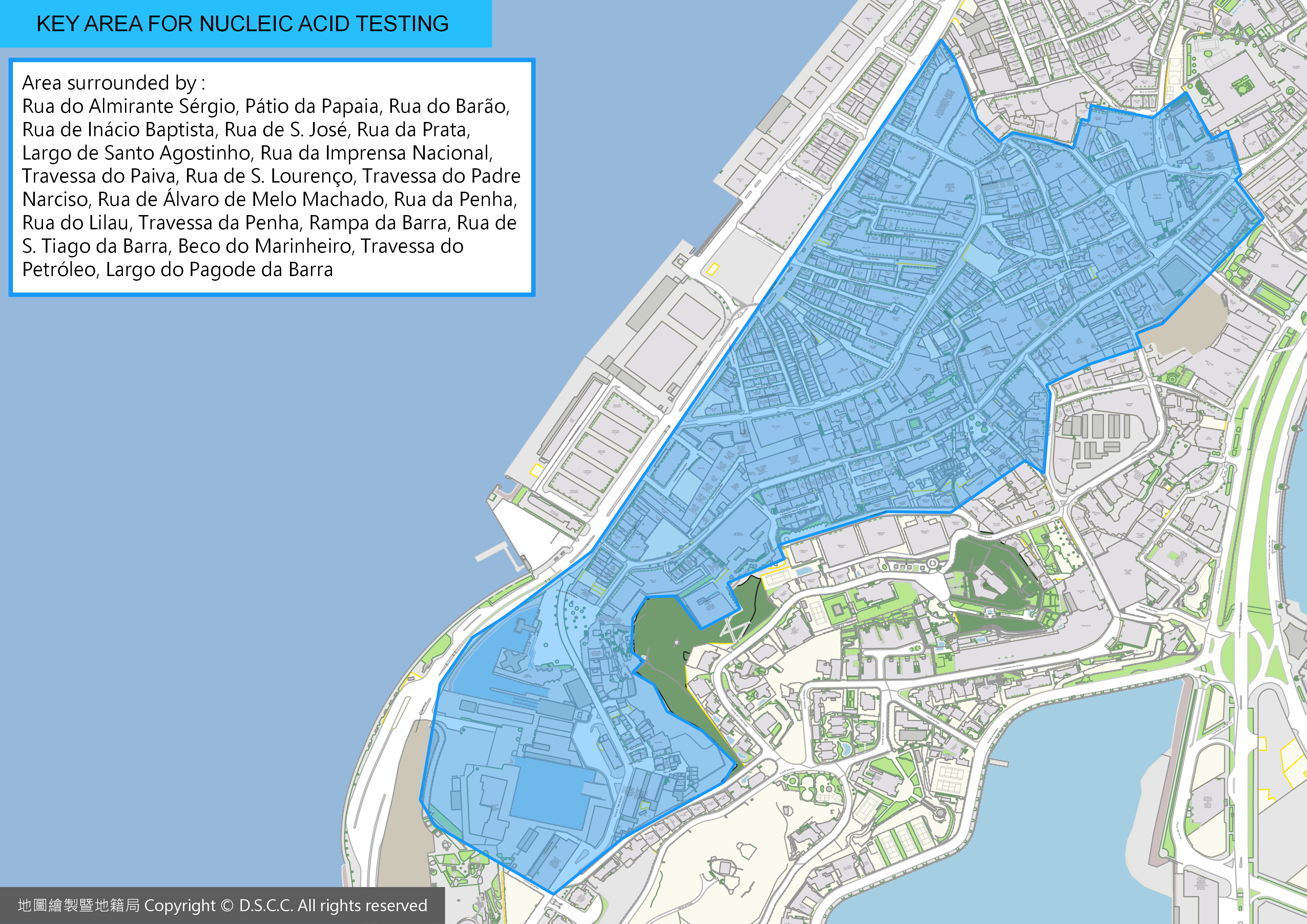 - People who have resided, worked or stayed for more than half an hour on 18 November in the area surrounded by Rua do Almirante Sérgio, Pátio da Papaia, Rua do Barão, Rua de Inácio Baptista, Rua de S. José, Rua da Prata, Largo de Santo Agostinho, Rua da Imprensa Nacional, Travessa do Paiva, Rua de S. Lourenço, Travessa do Padre Narciso, Rua de Álvaro de Melo Machado, Rua da Penha, Rua do Lilau, Travessa da Penha, Rampa da Barra, Rua de S. Tiago da Barra, Beco do Marinheiro, Travessa do Petróleo, Largo do Pagode da Barra;