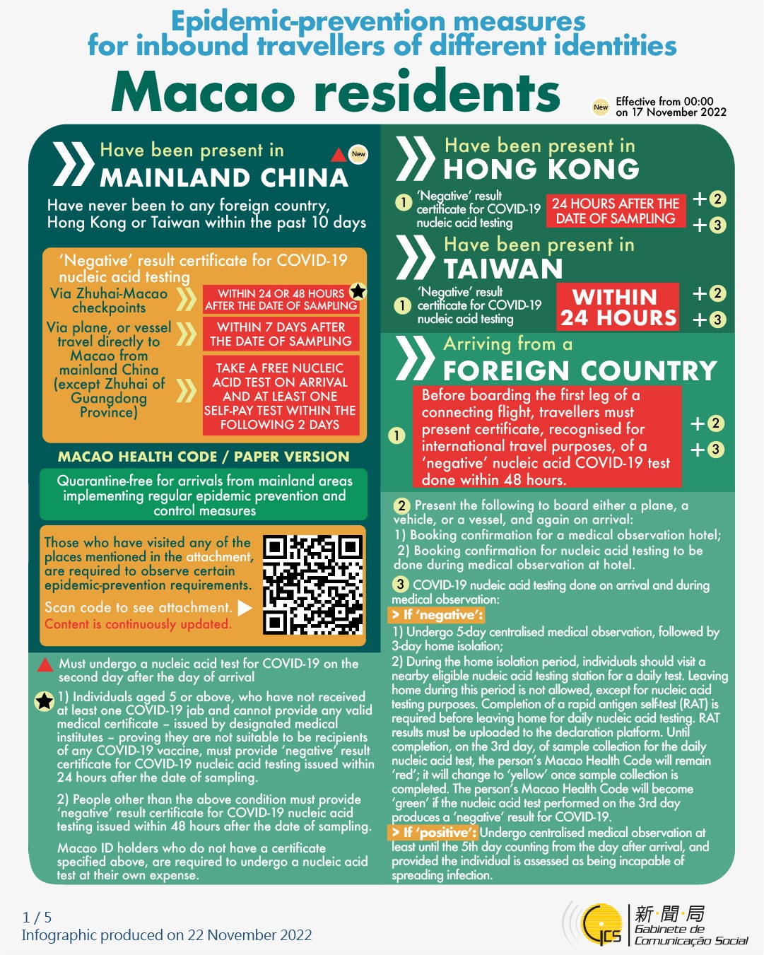 [infographic] Epidemic-prevention measures for inbound travellers of different identities (22 November 2022 )
