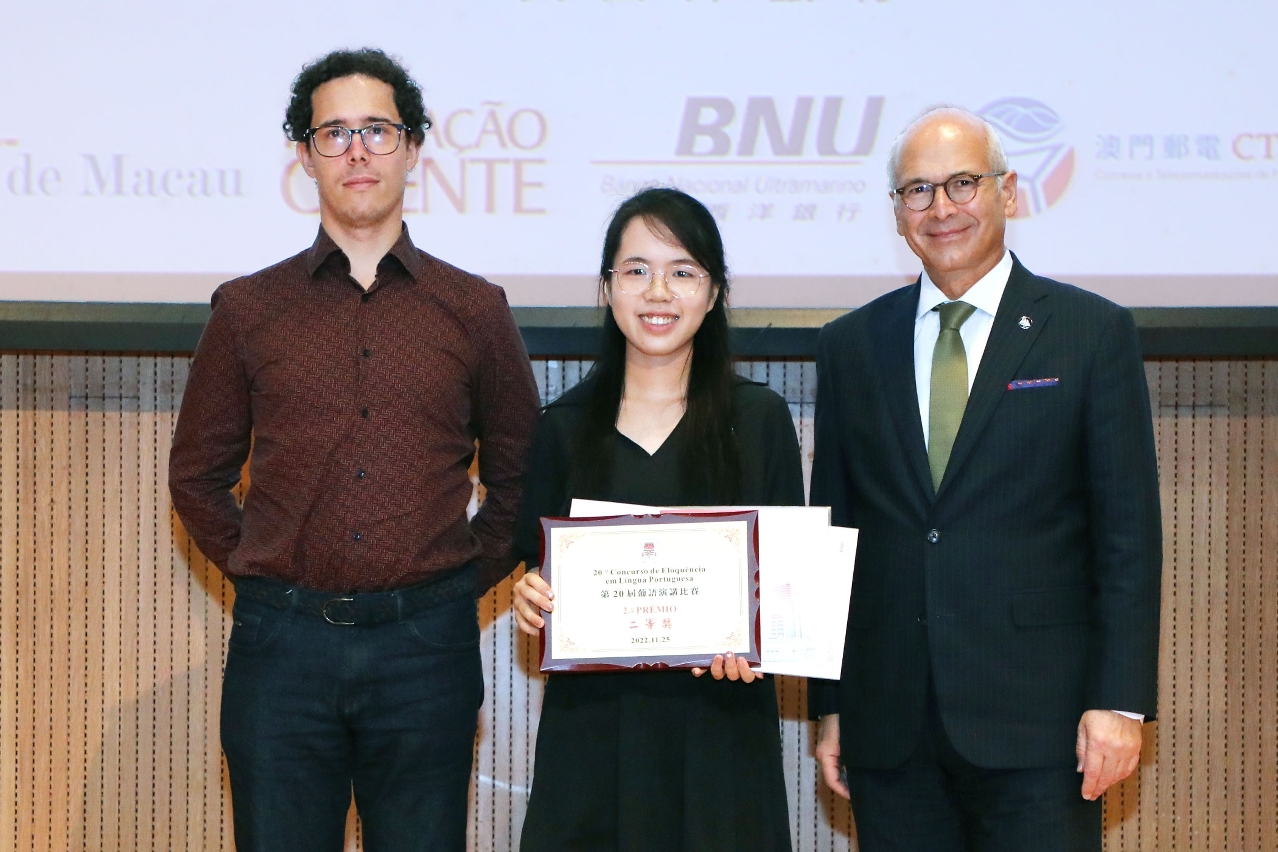 Three students from the University of Macau (UM) recently won the first prize, second prize, and third prize respectively at the 20th Portuguese Speech Contest after competing with students from different higher education institutions in Macao.