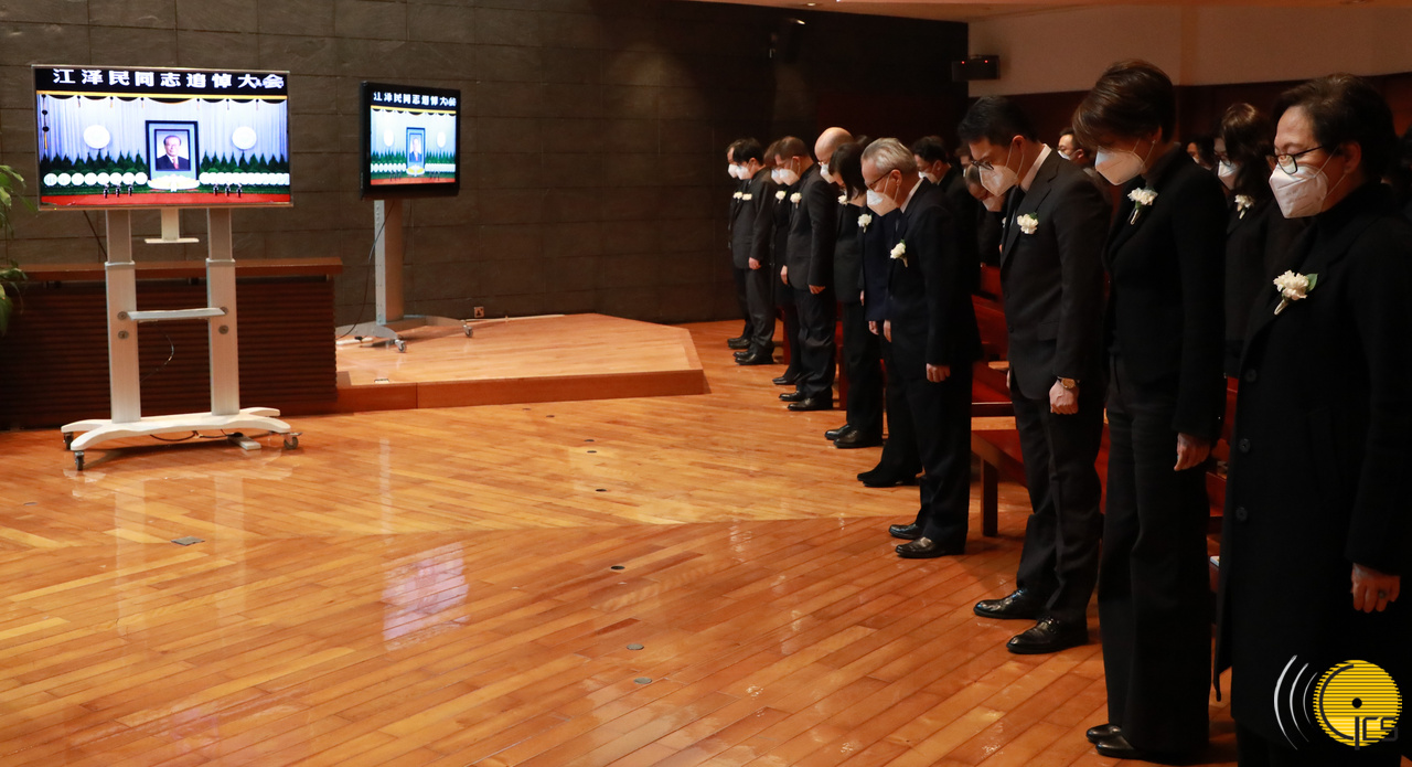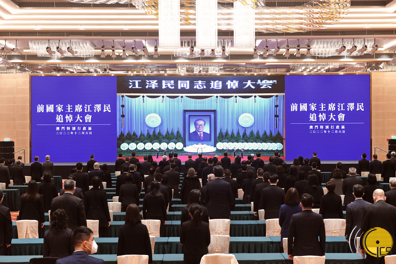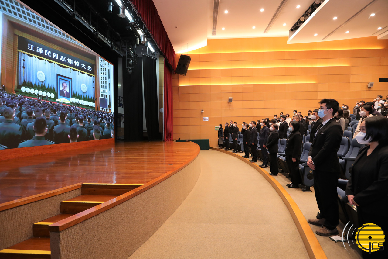 The memorial service for the nation’s former president, Mr Jiang Zemin, was held with solemnity at the Great Hall of the People in Beijing at 10am today. As a mark of respect for the former leader, the Chief Executive, Mr Ho Iat Seng, led a delegation of Government officials to watch, at the China–Portuguese-speaking Countries Commercial and Trade Service Platform Complex, a relay of the live broadcast of the memorial service, and to observe a three-minute silence to the late leader.