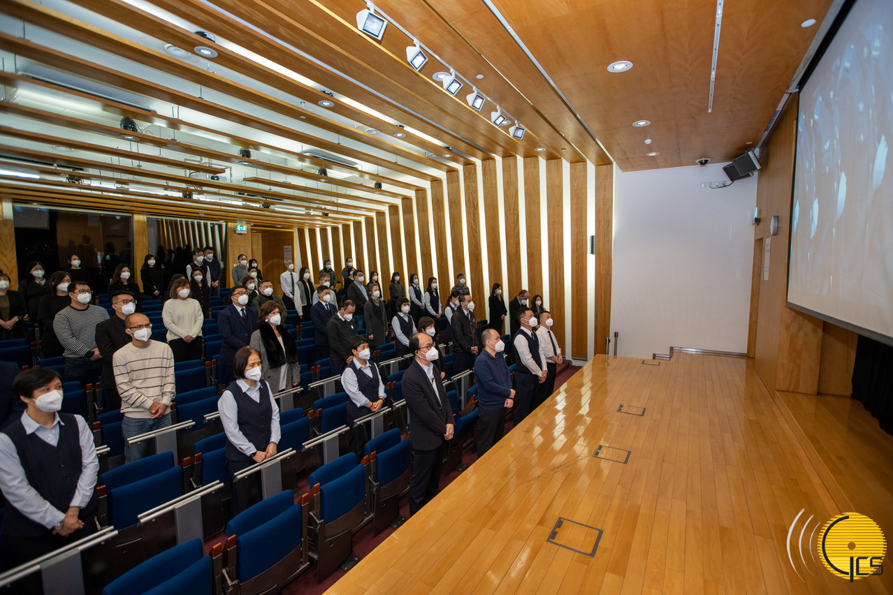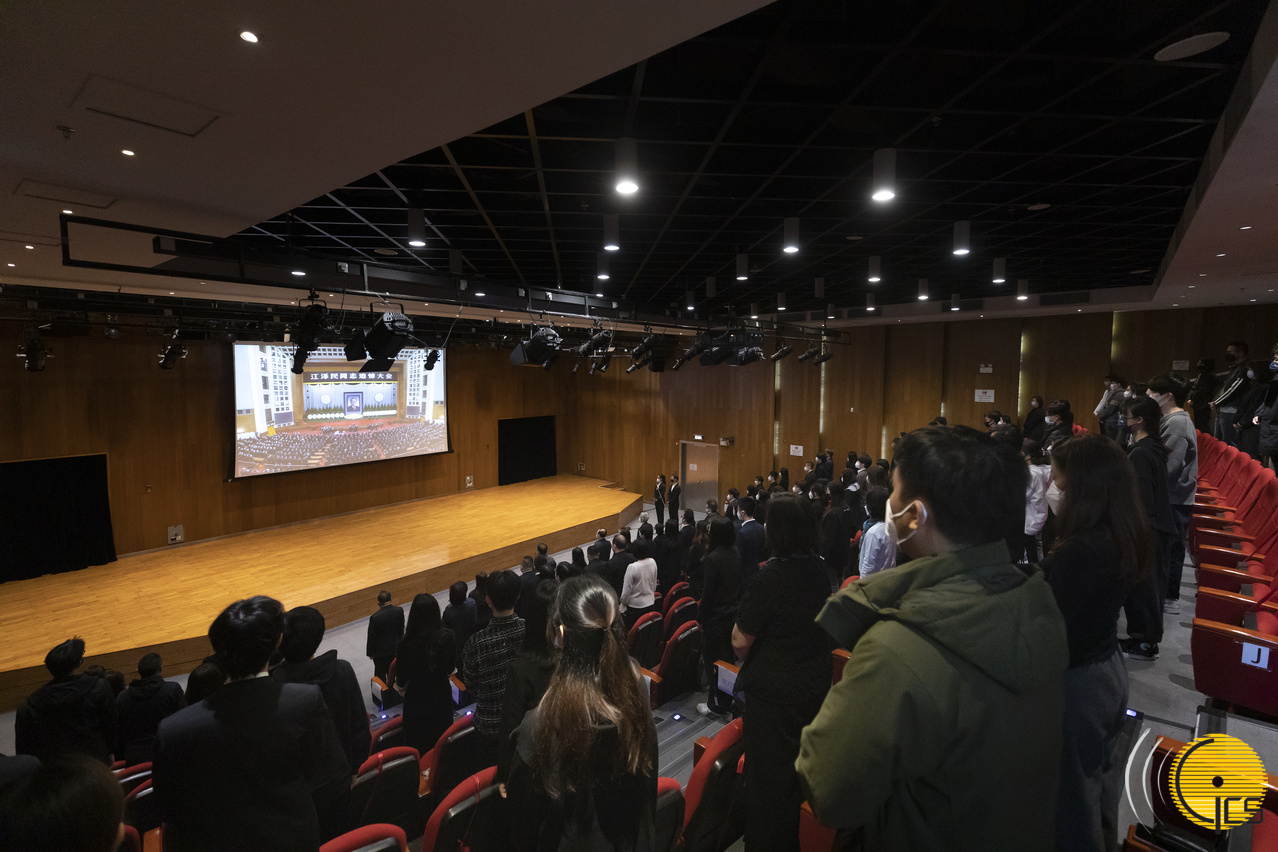 The Chief Executive’s delegation consisted of more than 260 people, including principal officials, members of the Executive Council, and heads of public departments. Each person had a white-flower buttonhole, and all participants watching the live broadcast stood to attention at 10am to observed the three-minute silence in synchrony with the actual ceremony’s proceedings.